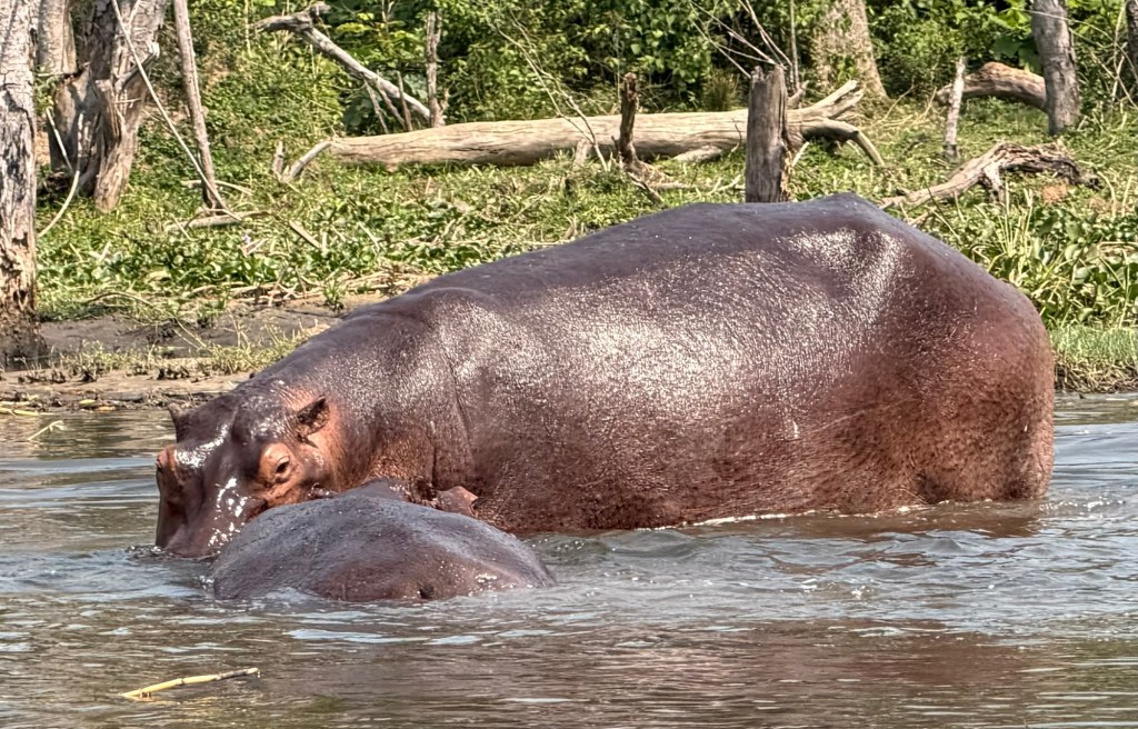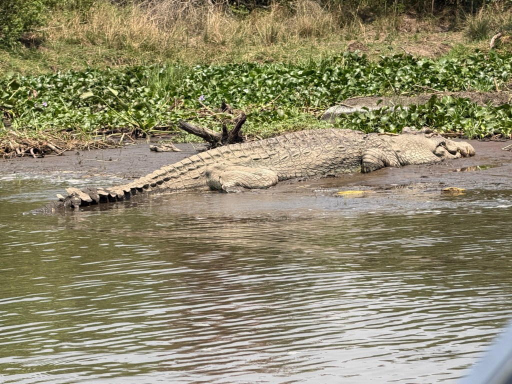 We saw dozens of hippo and crocodiles, 2 large elephants, 2 Rothchild giraffes, hundreds of Kob, several Oribi, Hartebeast, water buck, warthogs, baboons, Cape Buffalo and a multitude of birds.