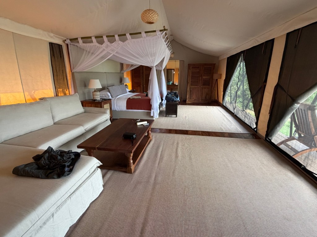 The food is so good, it is hard to turn down the tasty choices, but I am trying to eat less. After breakfast, Mark and I spent several hours relaxing in our tent dipping in our pool. Lunch was at 2pm followed by another game drive at 5pm.