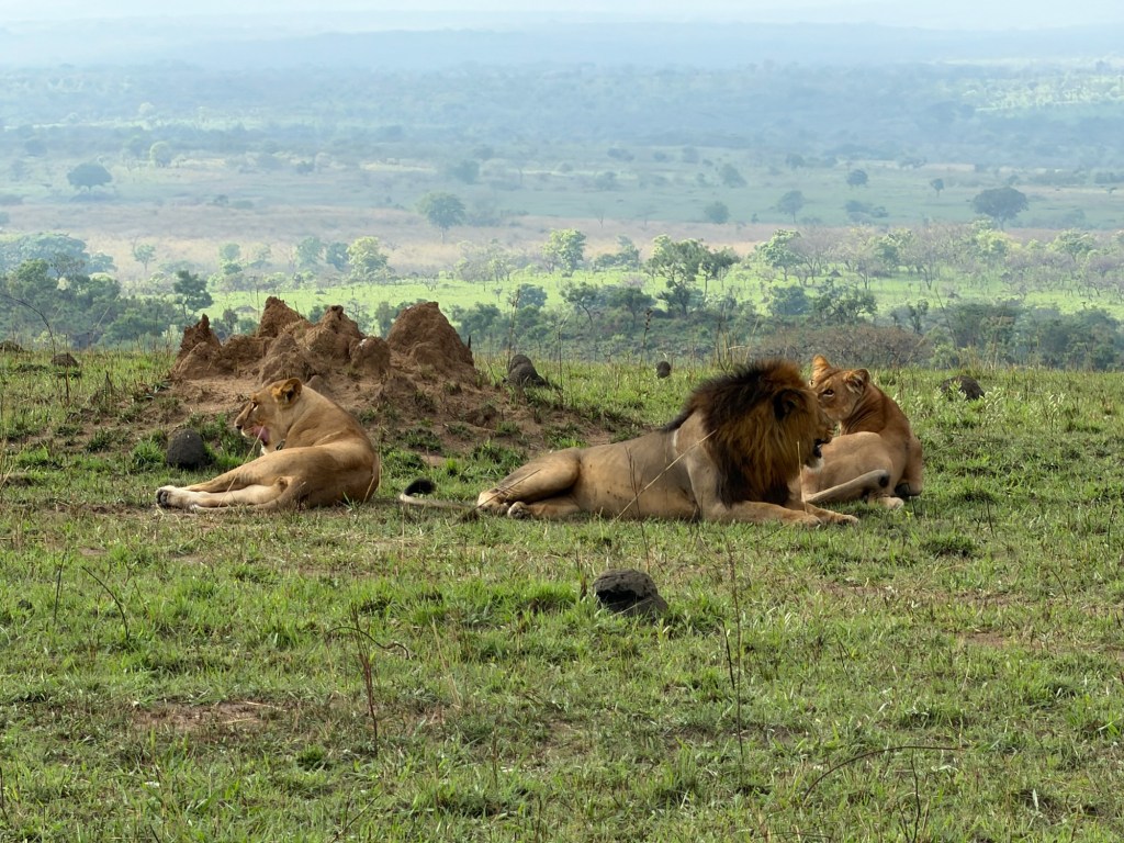 There were 5 other lions lounging around. No one looked hungry. There are literally thousands of Kob in Murchison National Park to choose from for an easy meal. We watched this group for awhile, but nothing much was happening as they were all sleeping.