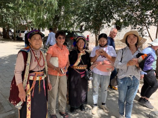 The two traditional ladies, the daughter of one and her daughter on the right.