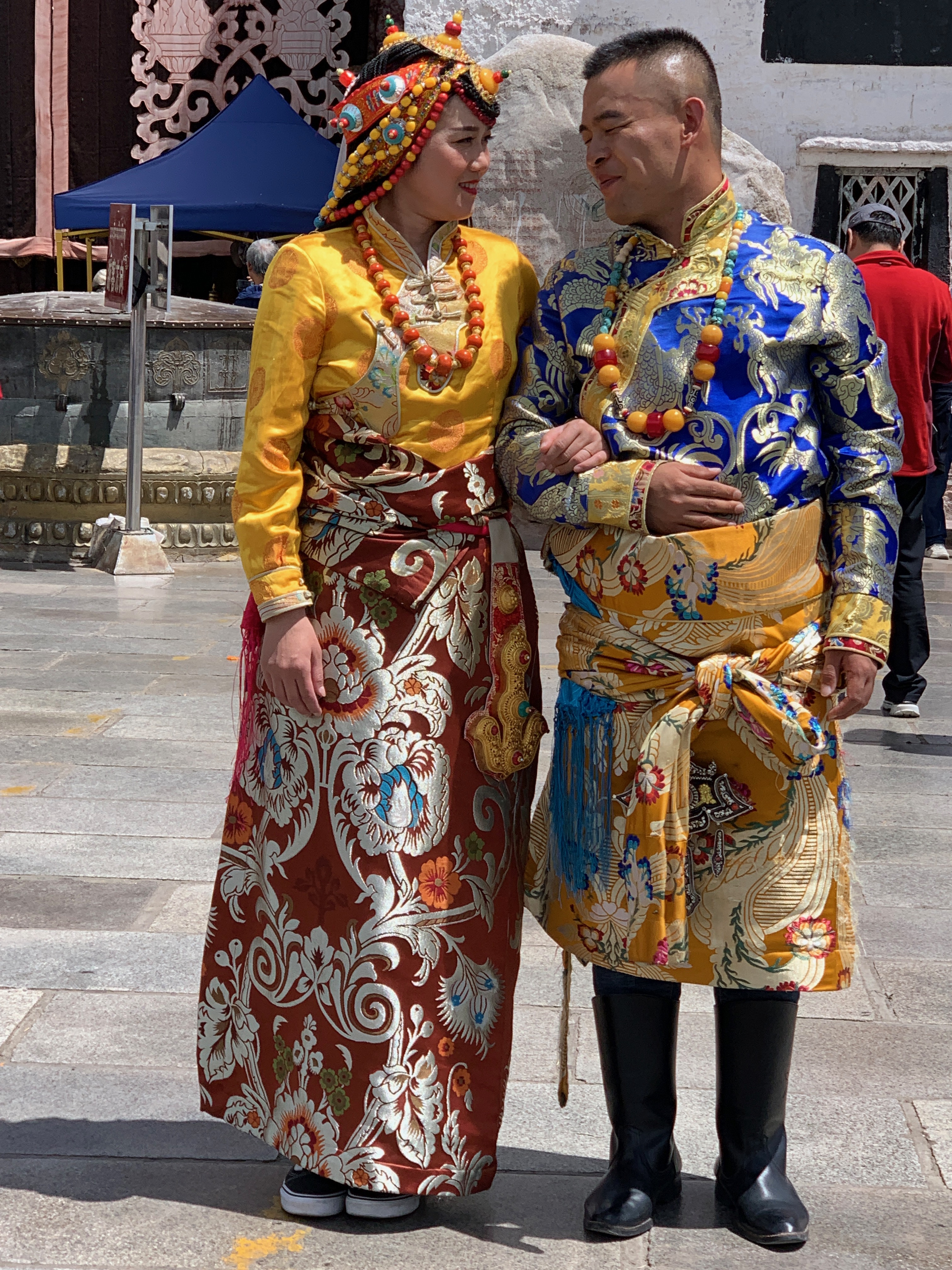 Happy newlyweds in front of the temple.