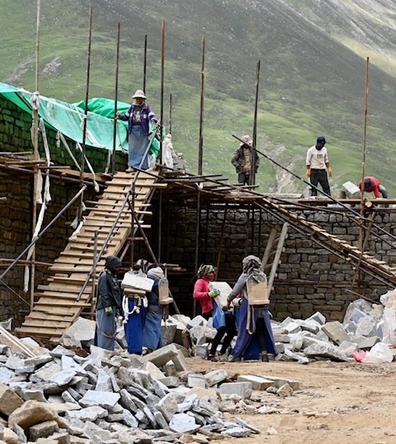 Midway on the hill we encountered women loading and carrying large and heavy stones.