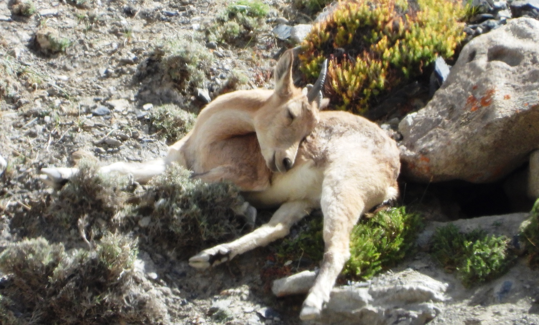 A young male Ibex on the hill across the river from the highway.