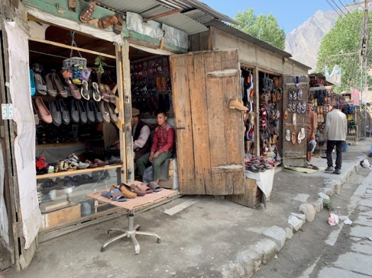 An open air shoe store.