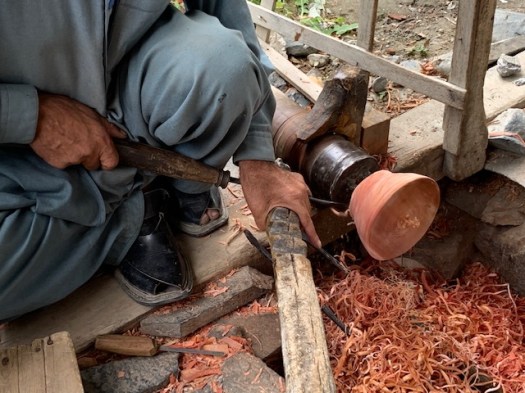 Close up of the bowl turning under the pressure of the spinning water wheel.
