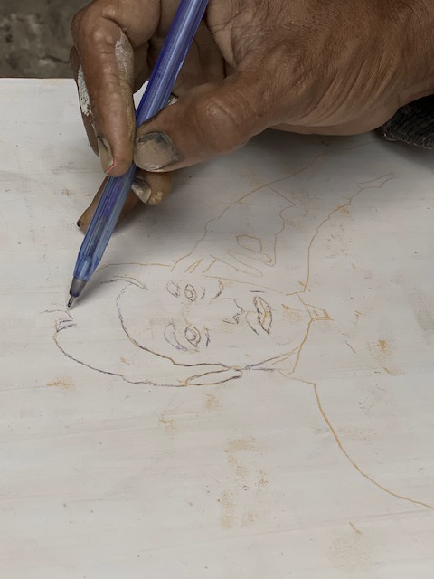A designer sketches his next painting.