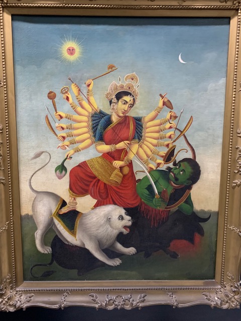 A painting of Durga as presented in the Durga Festival, which we saw.