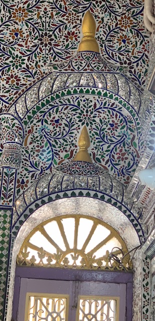 Some of the glad and mirror work on the ceiling of the Jain Temple.