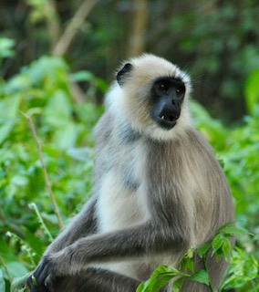 A Common Langur monkey. Mark caught his hard-to-see face.