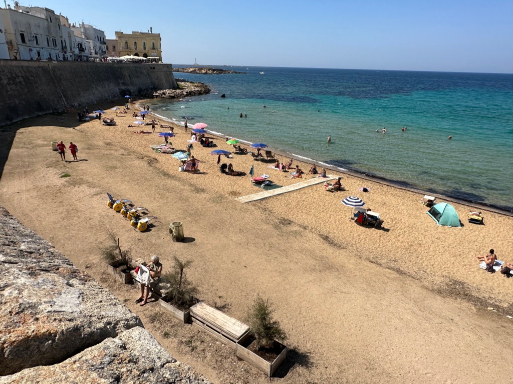 From Galantine, southwest of Lecce, we drove to Gallipoli on the Ionian Sea. There we wandered around the town and enjoyed watching the scene. Being a beach town, Everyone was casual and relaxed. Gallipoli is an island with a strong ancient defensive position that makes for a good tourist visit today.