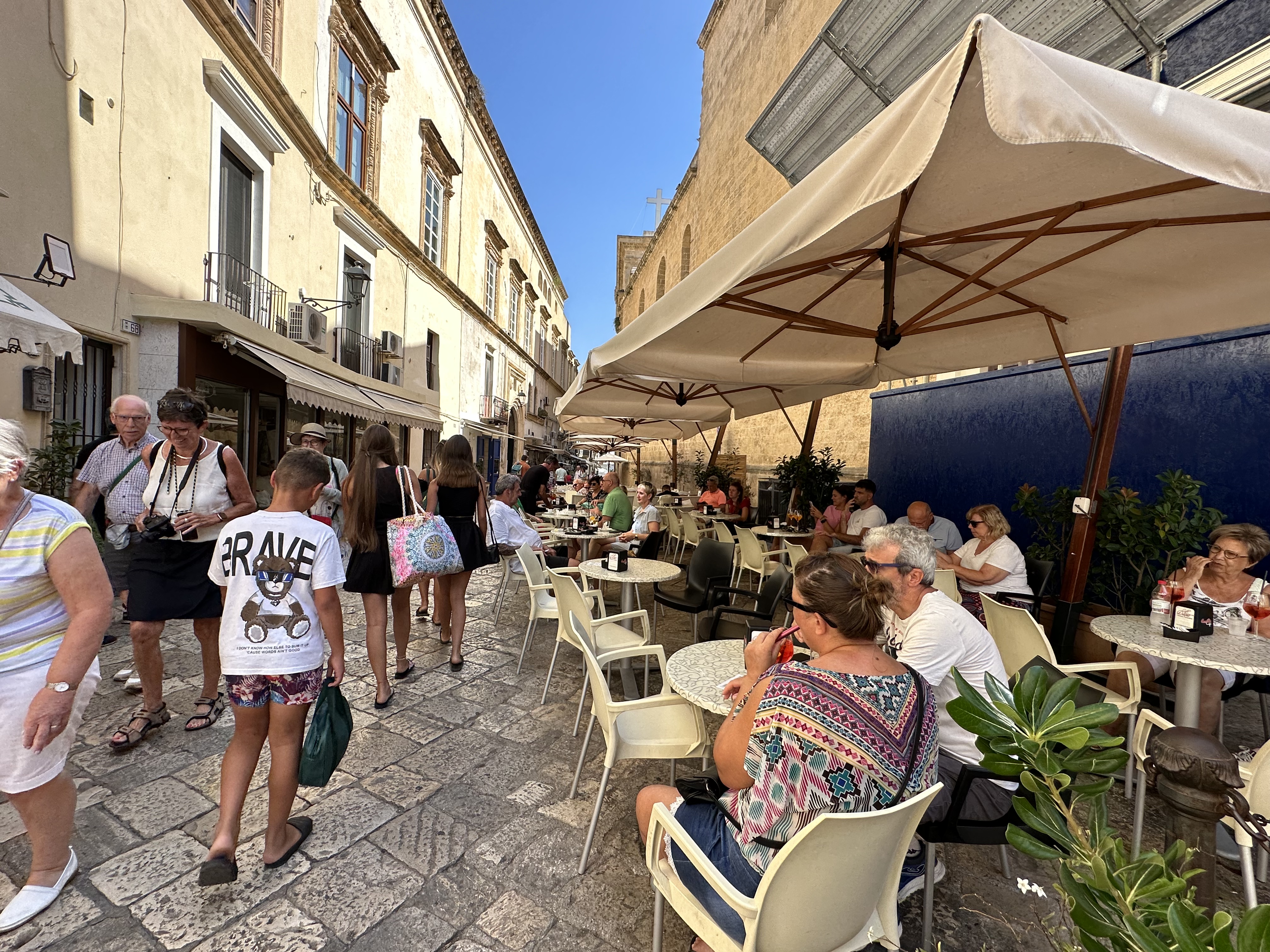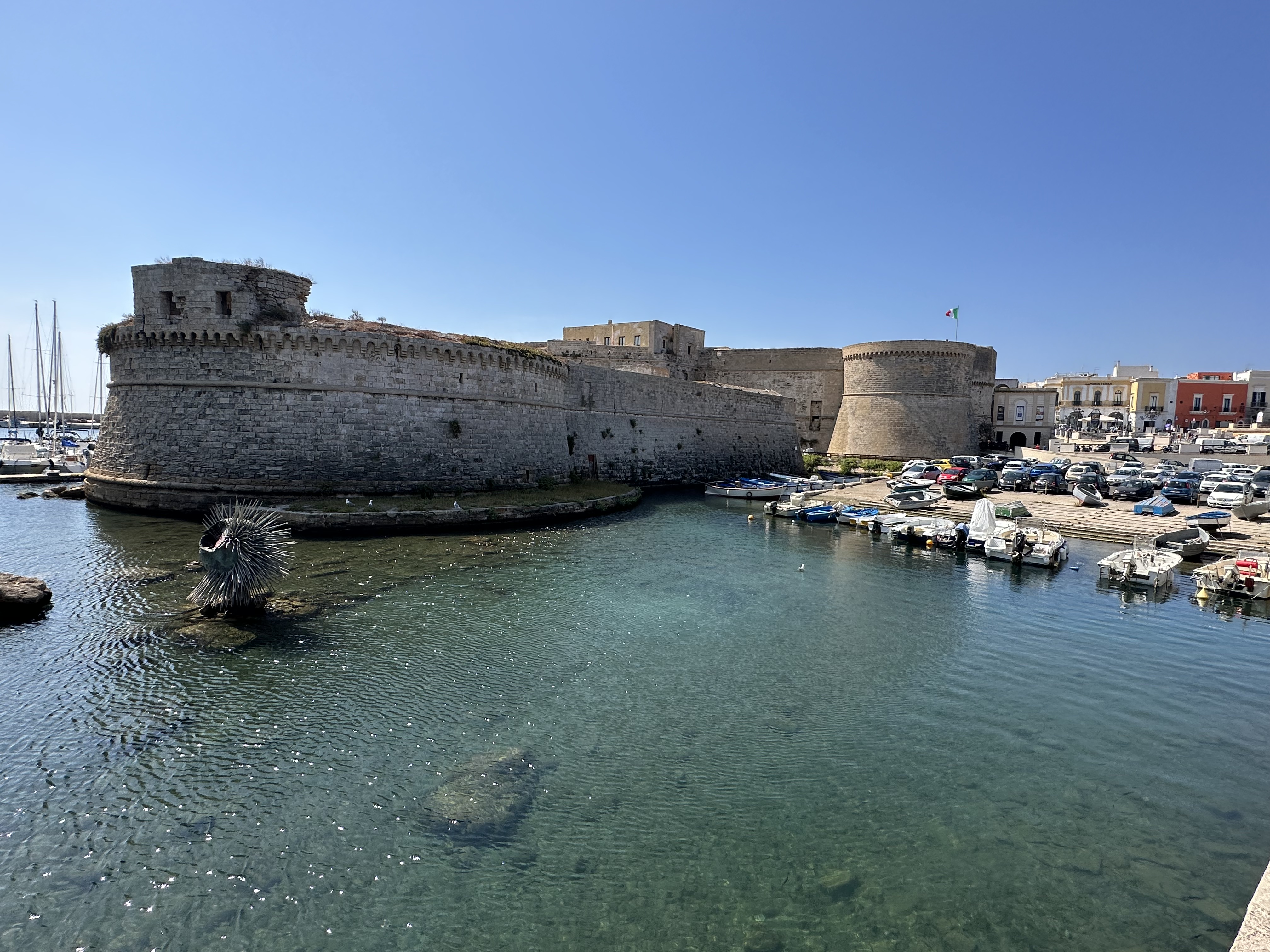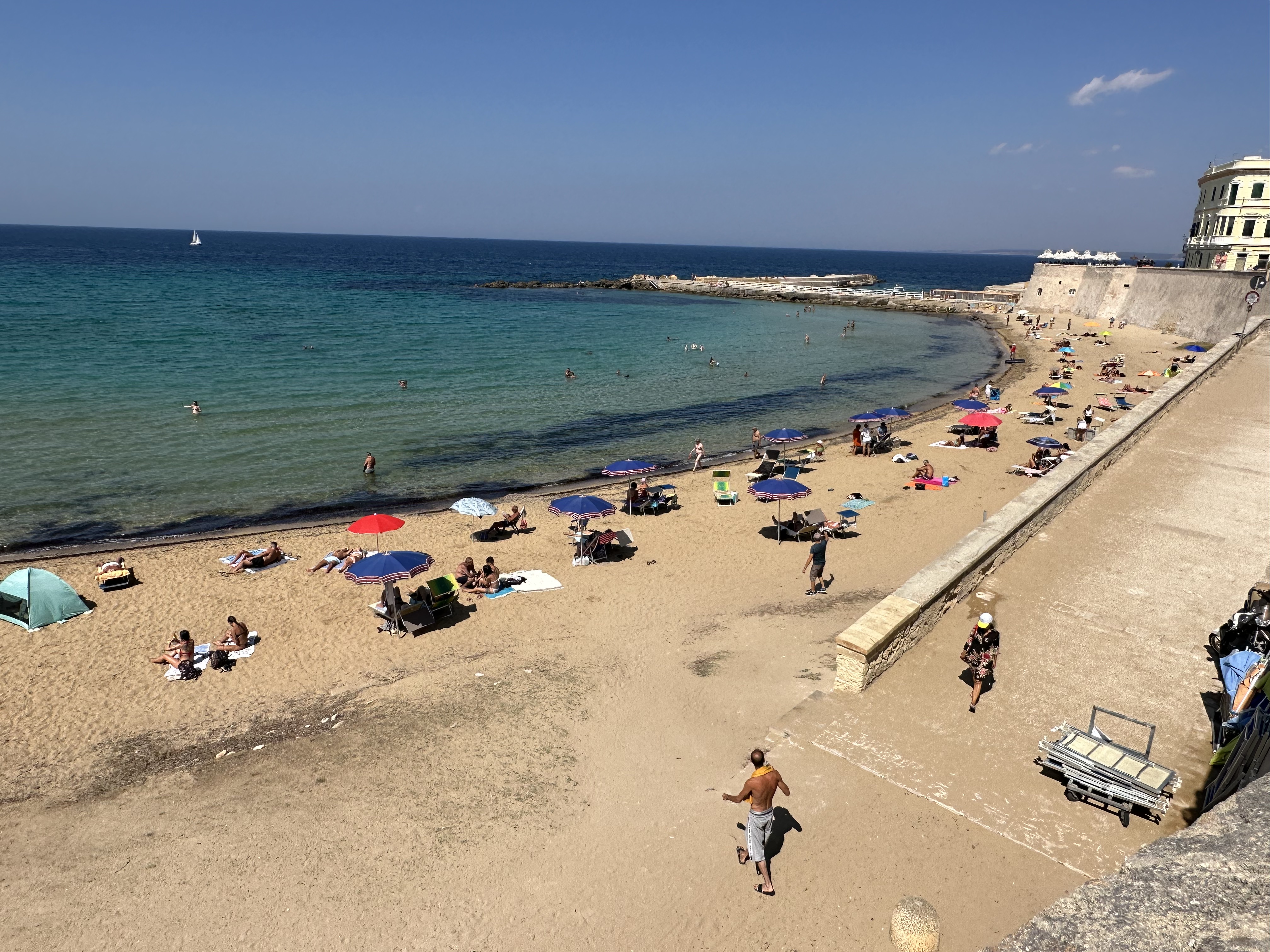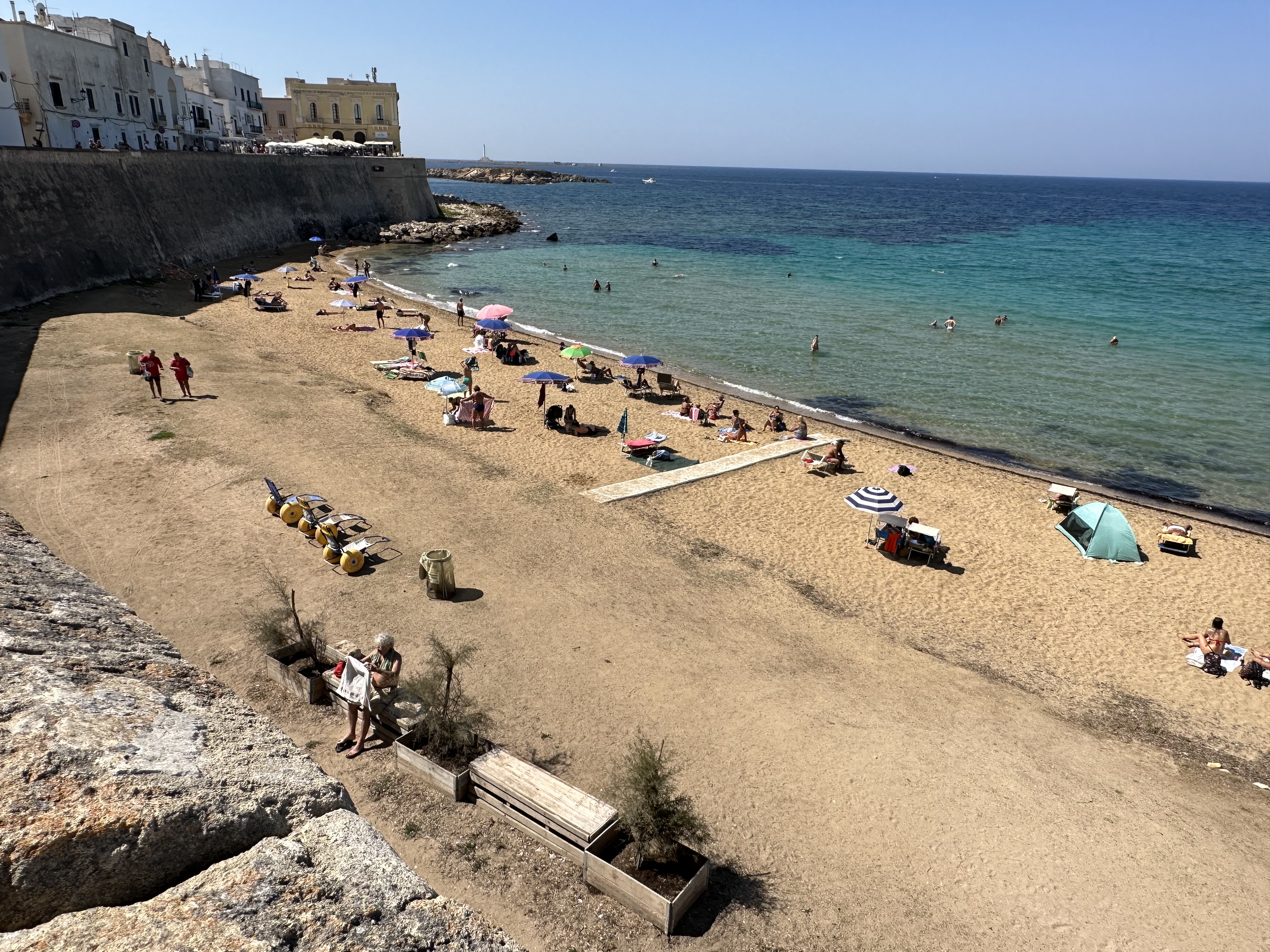 From Galantine, southwest of Lecce, we drove to Gallipoli on the Ionian Sea. There we wandered around the town and enjoyed watching the scene. Being a beach town, Everyone was casual and relaxed. Gallipoli is an island with a strong ancient defensive position that makes for a good tourist visit today.