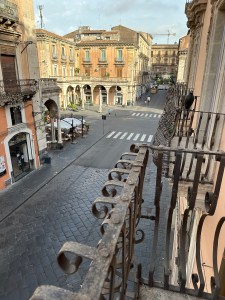 We flew from Bari, the capital of Puglia, to Catania, Sicily on the evening of September 22 and took a taxi to our hotel in the heart of Catania’s Old Town. Our travel agent, Martina, had booked the place but not told us what to expect.