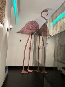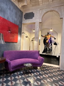 It was the most outlandish accommodation we have experienced as well as the most humorous and appealing. For starters, there was a huge, ceramic black foot in the middle of our room, not to mention the life-size ceramic sculpture of Spiderman outside our door, as if standing guard. There was pop art in all the public rooms and on every shelf and wall space. We wandered around smiling at everything. The hotel was on a pedestrian only street with several restaurants. We selected one and had a delicious meal of fresh fish and pasta. We were joined by the first of our selected group to arrive, Jayna and Craig Ashcraft, Ken and Julie Zuckerman and Jean Creasey. They had all arrived early for our group gathering and we were happy to have them join us for dinner. We were all giddy to finally be together in Sicily after a year and a half of planning. We lingered over dinner a long time umtil we were all getting sleepy. We crawled into bed giggling about the foot at tne end of our bed.
