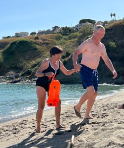 The water was a comfortable temperature and we had fun bobbing around. Liz and Jean went for long swims. I thought the beach was pretty dirty and a bit disappointing. The pool was a much better place to cool off. Some of us worked out with Roxanna back at the villa.
