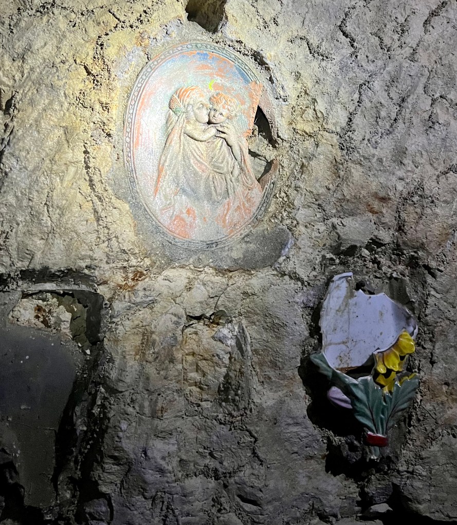 Thank you again for teaching about Malta — I had no knowledge of this area. Why the shower caps and helmet? To protect you or the underground?