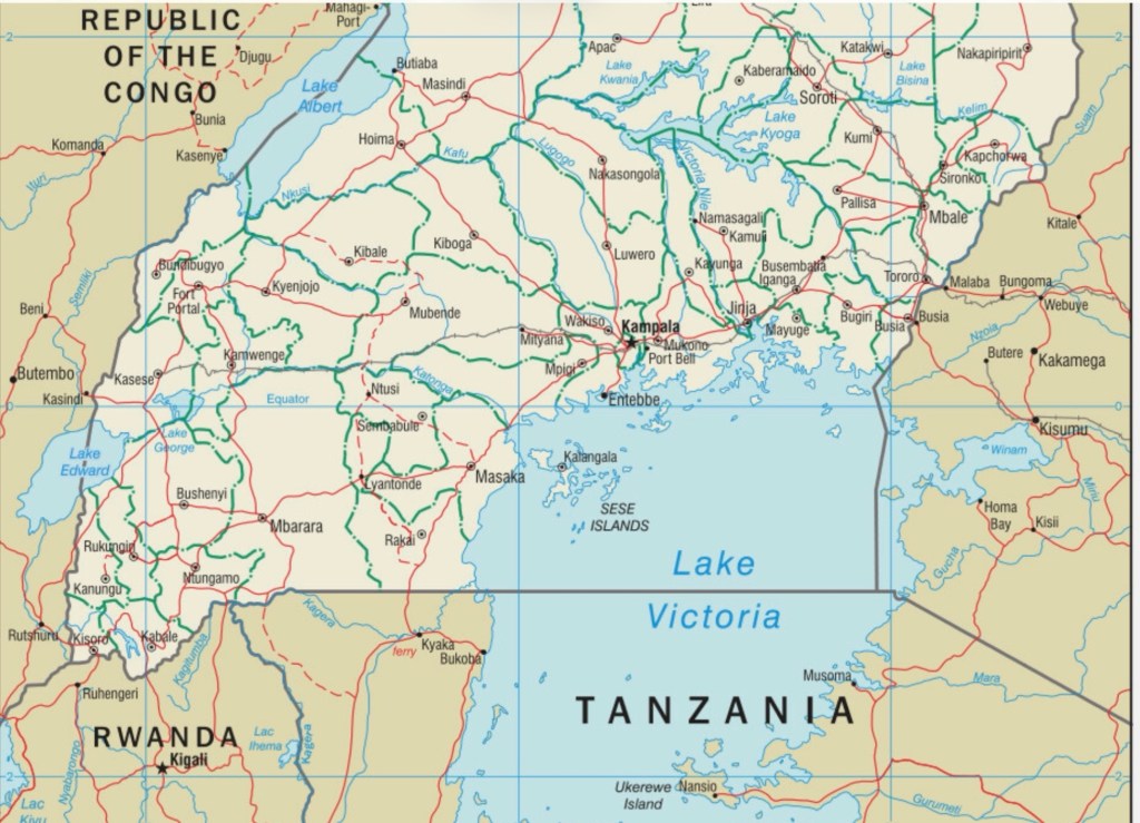 Looking at the map, Entebbe, the international airport for Uganda, is just below the capital of Kampala. Bwindi, where the Bwindi Community Hospital is located is literally in the SW corner of the country just south of the village of Kanungu, which is indicated on the map.