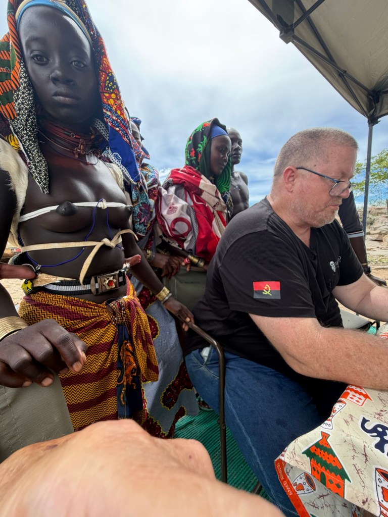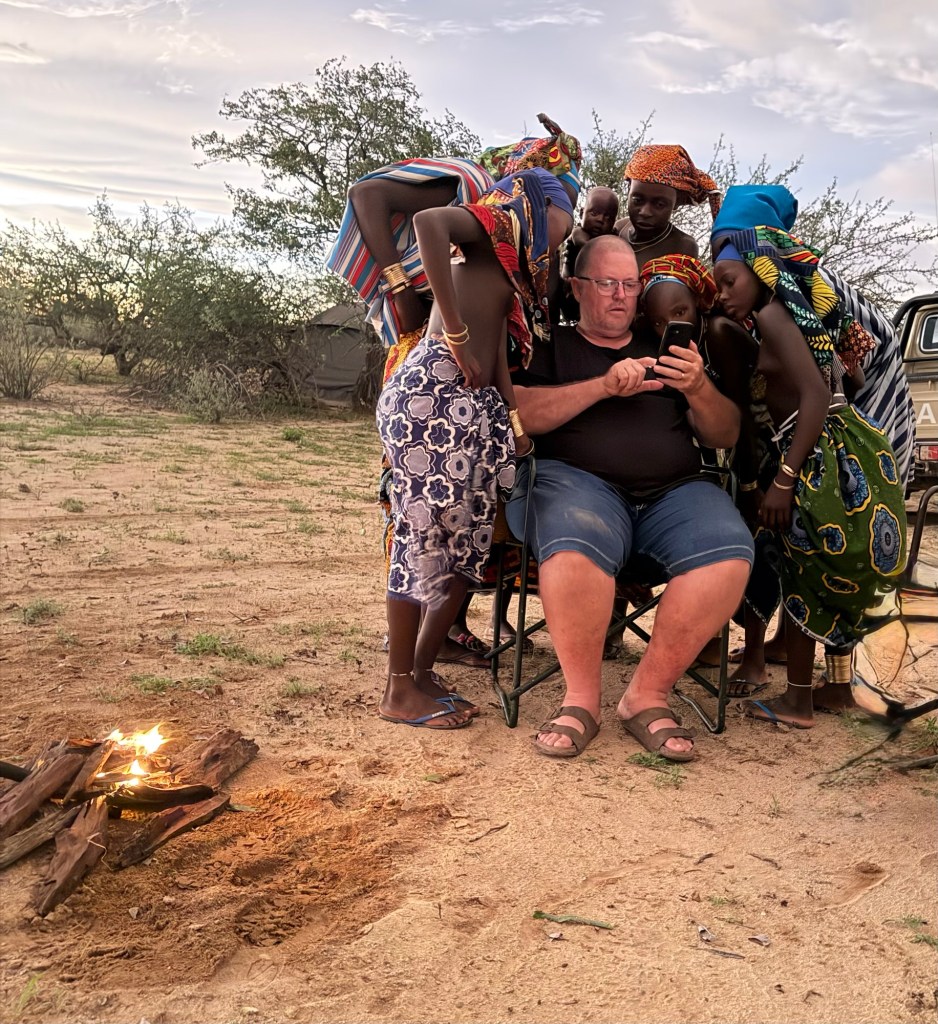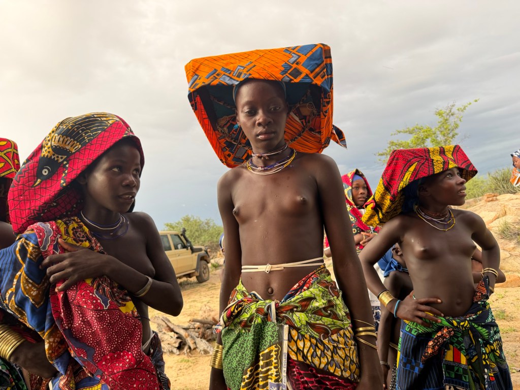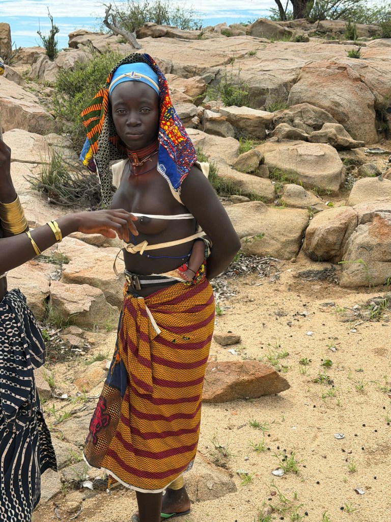 Up early, we were surrounded by Ovakuvale tribal women by 7am. They were most interested in our photos on our phones and, after they got over the notion that we wouldn’t pay for their photos, they settled down and took an interest in what we were doing and eating. After breakfast, Claire, Mark and I went for a walk up a nearby granite hill that had some rock art.