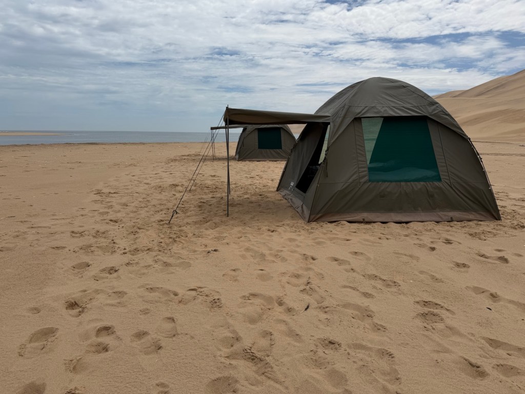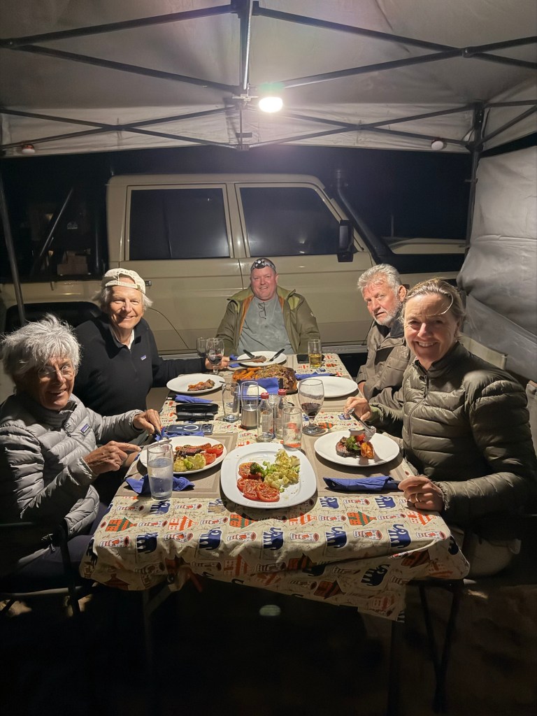 The staff busied themselves putting up our tents and setting up the shower tent. Stallin was good to his word and managed to get dinner on the table at 8pm. After a lovely meal of springbok, roasted vegetables and baked yams, I finally got my shower with luke warm water. Mark followed right behind me. We were content to go to bed in our tent.