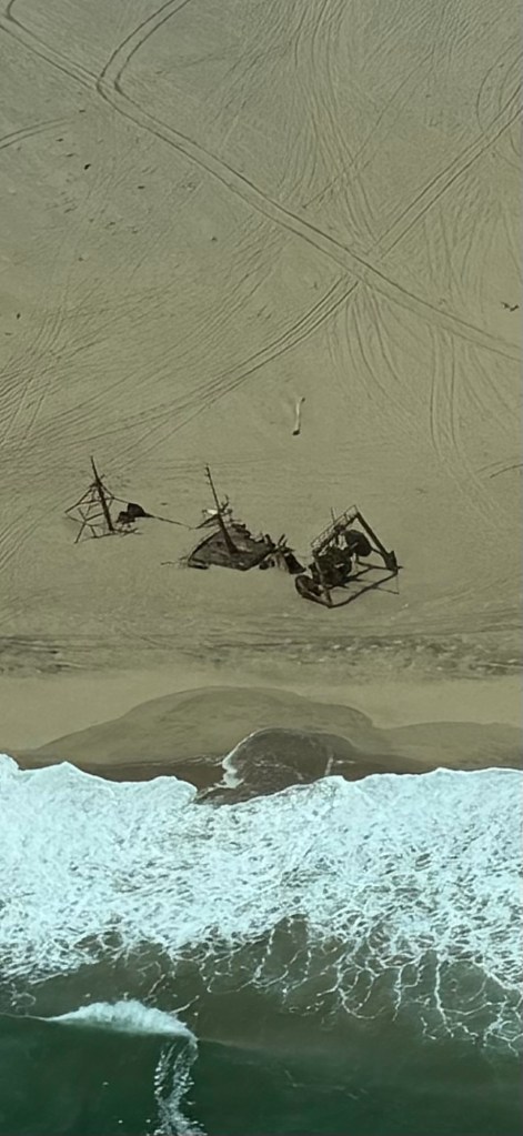 Another travel day. Pack up camp into 3 vehicles and head north at 8am to get off the beach while the tide was low and head to the village of Tombua and further north to Moçâmedes, which was previously named Namib. We inspected a shipwreck we found called Vanessa, and checked out a marble quarry worked by the Chinese.