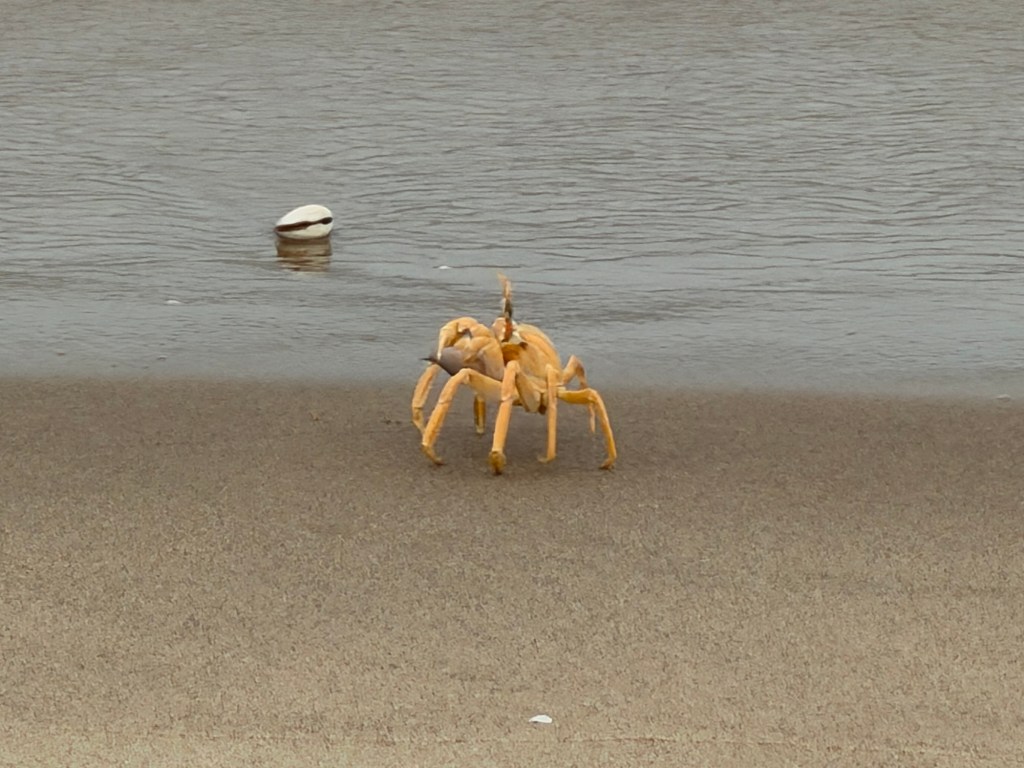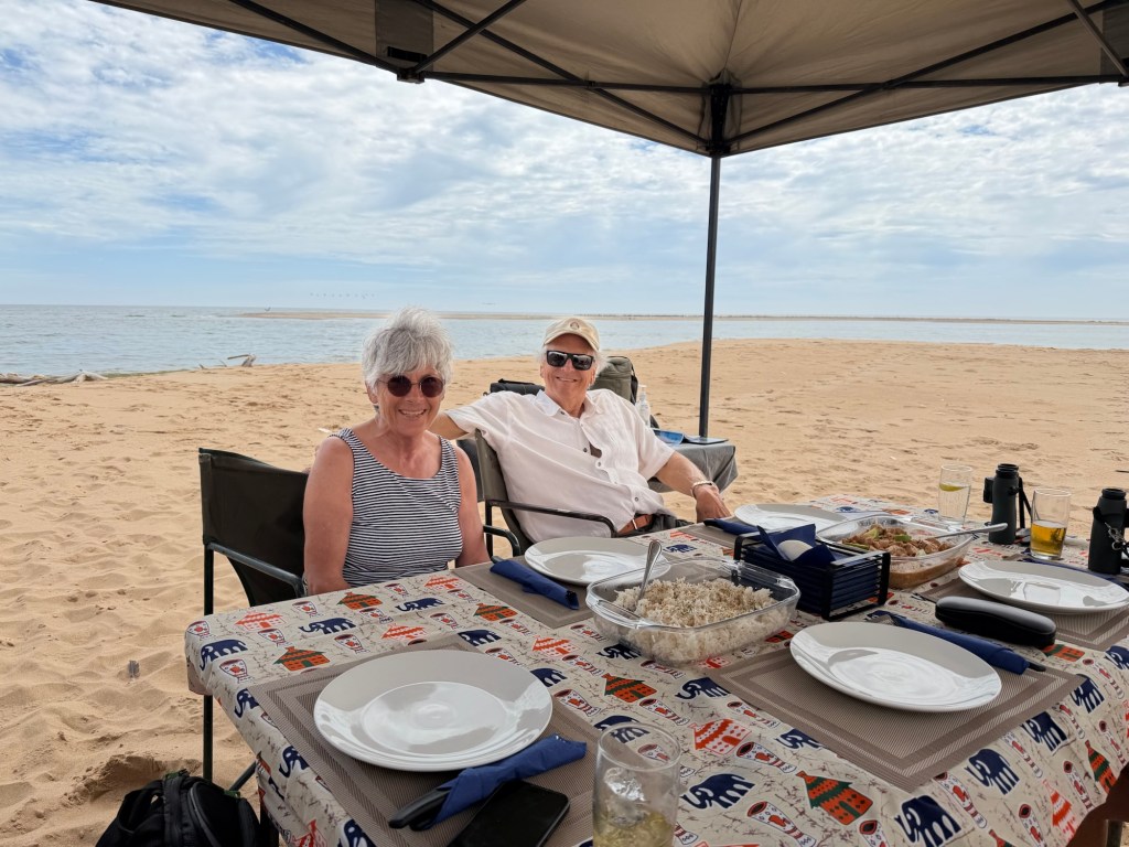 It all started in the rain, but we pushed ahead anyway. By the time we reached the ocean, 100 kilometers from town, the rain had stopped, but the sky remained overcast. By 11am, the camp was ready, the chef was preparing lunch and we had gone for a long walk on the beach. The sun had come out and everyone was happy. After a super lunch made by Stallin, we waded across a shallow bay to a tiny island and then walked around the island before heading back. As the tide was coming in, we had to hurry.