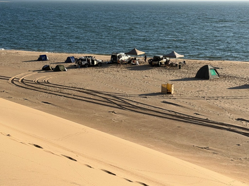 Our desire was to travel along the beach between the ocean and the Tigres dunes, an idea we chose after flying over the same route the day before. To make it happen, we needed to hit the road at 5:30am on a spring tide and a full moon, arrive at the dunes an hour before low tide, drive along the beach until lowest tide and find a safe place to set up the camp, from which we are unable to leave until low tide the next day. A tall order that we happened to fit into exactly.