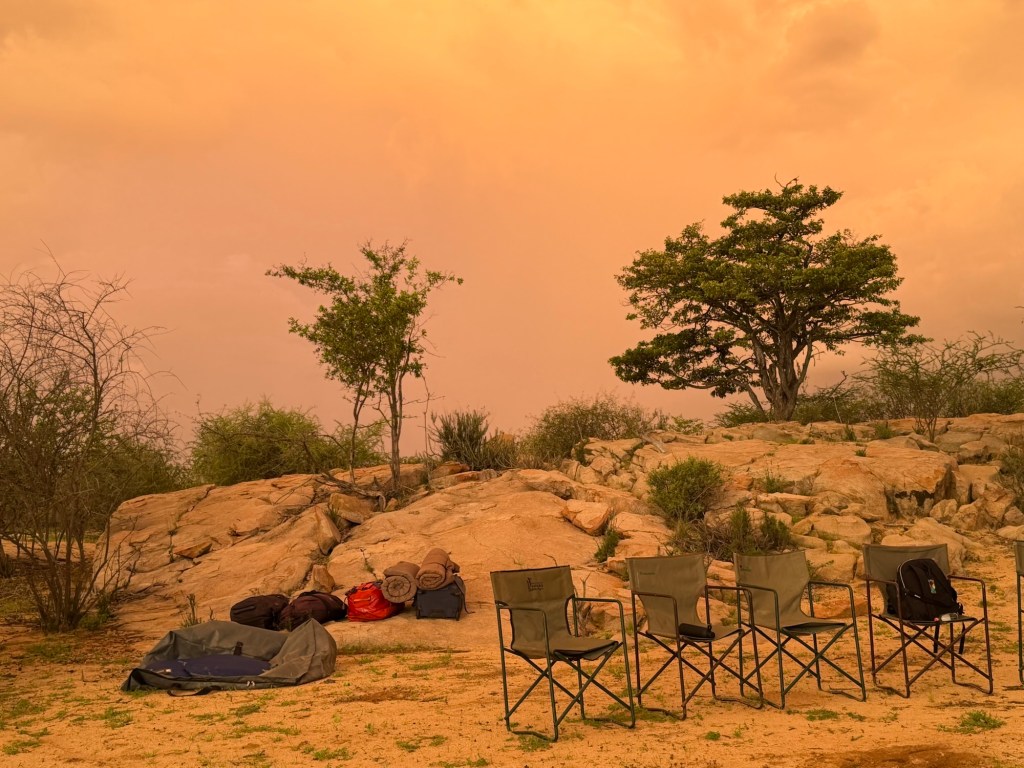 Then we drove east the rest of the day to a place called Virei and then to TchitunduHulo, a granite outcrop in the desert. After hours of rough roads we finally arrived at our chosen campsite at 5pm.