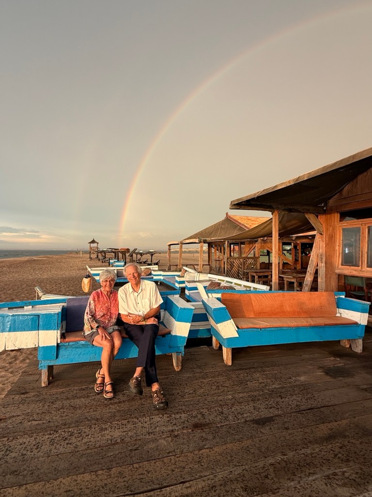 After cocktails under a full rainbow, Stefan, Claire, Mark and I ate freshly cooked crab and grilled cherne and Lito fish. I liked the crab a lot as the shell was soft, But I did not like the fish. Anyway, we were up at 5 to go camping rain or not.