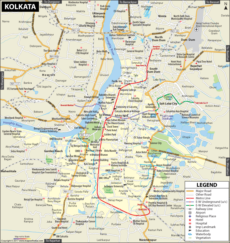 Attached is a map of Kolkata. It is hard to find places on it, especially if they are not marked, but I will try to locate the things I can. Our hotel is the Oberoi Grand and it is on the map near the north east corner of the green park land. In the south end of the park is the Queen Victoria Museum and on the right side of the Howrah Bridge is the Flower Market. The boat ride started and ended at the Chandpal Ghat just south of Metcalfe Hall, which is listed over the water slightly north of the park. The place I most wanted you to know about is not marked in any way, the Missionaries of Charity, Motherhouse and museum. The main building is located just to the right of the “”l” in Park Hotel, which is labeled just below the Oberoi Hotel. The orphanage is located just to the right of that where the A in Entally is named. I hope this has not confused you too much. Now on to the story.