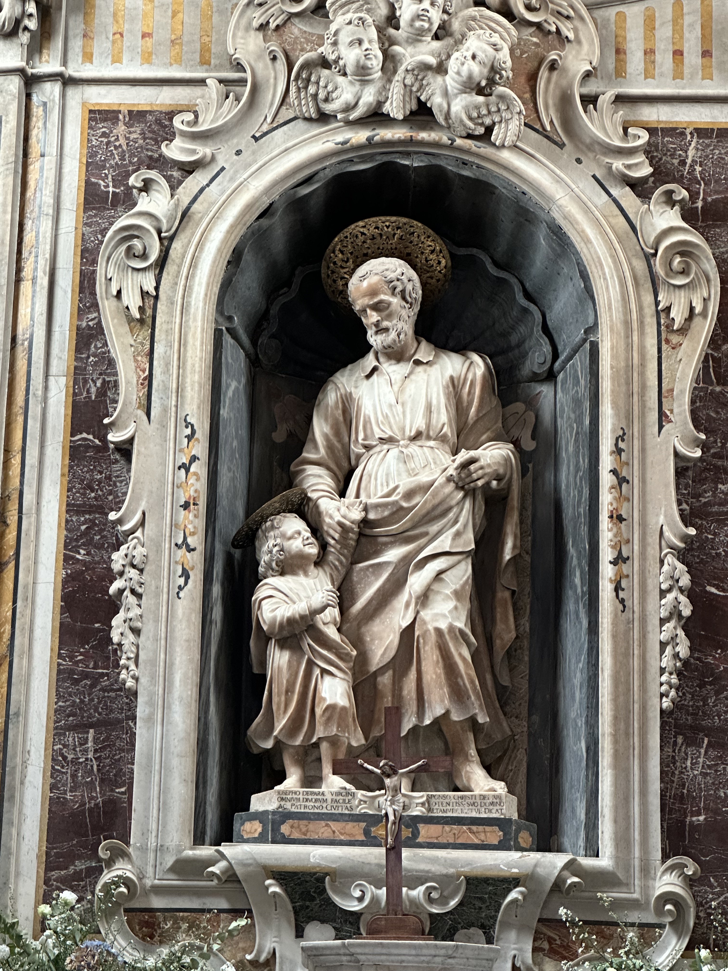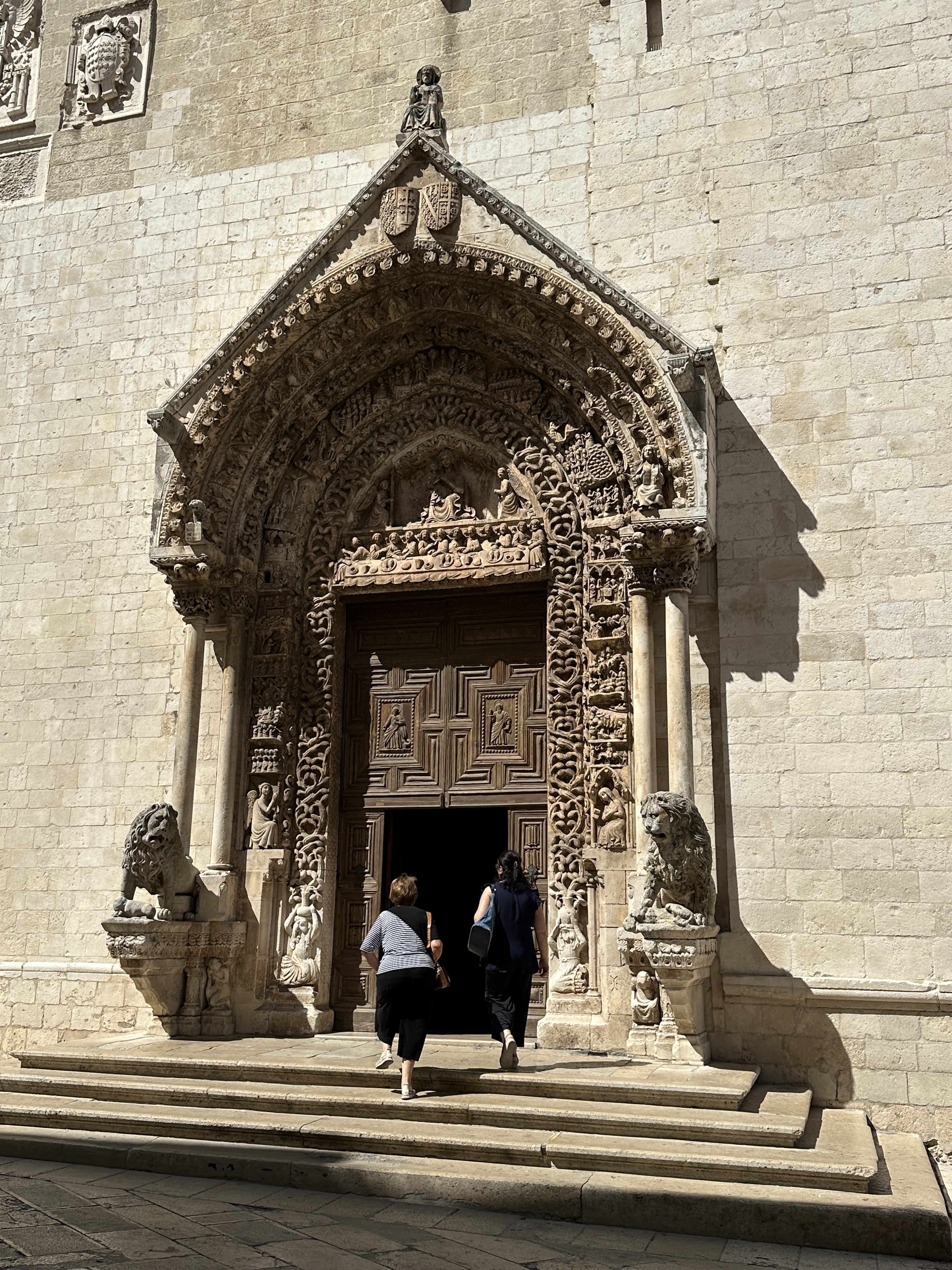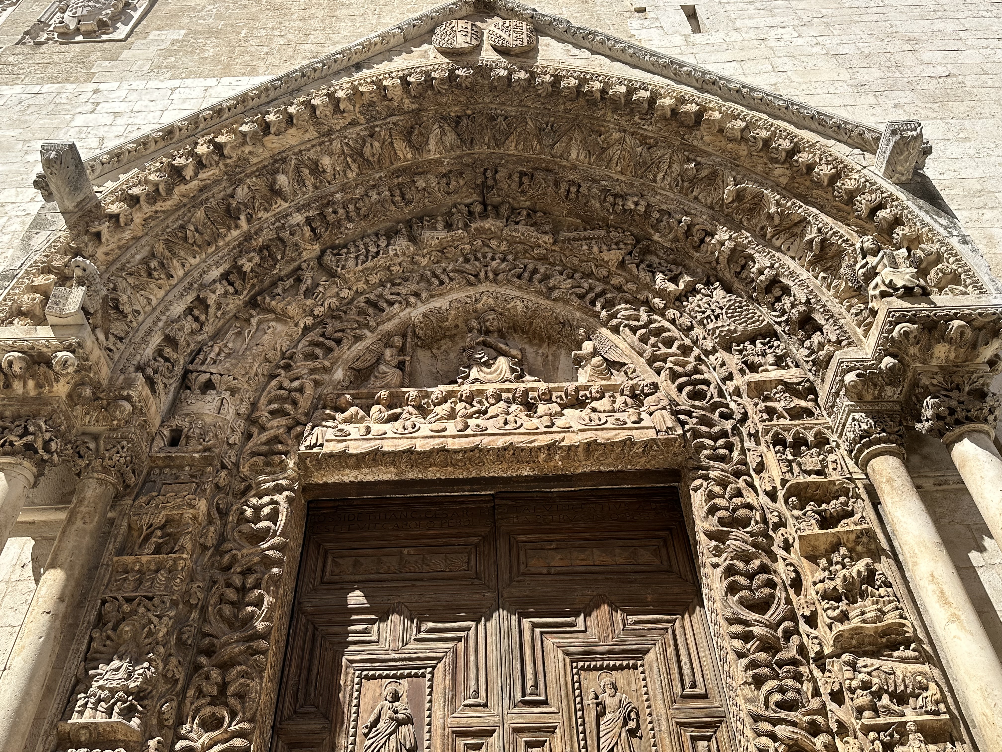 From the bakery we walked through Altamura’s Old CIty, which had been abandoned in the 600’s when Rome fell and was rejuvenated by Frederick II in 1233. We stopped at the Cathedral of the Assumption to view the intricately carved portal, a lovely sculpture of a young Joseph with Jesus and a special painting of the conversion of St Paul.