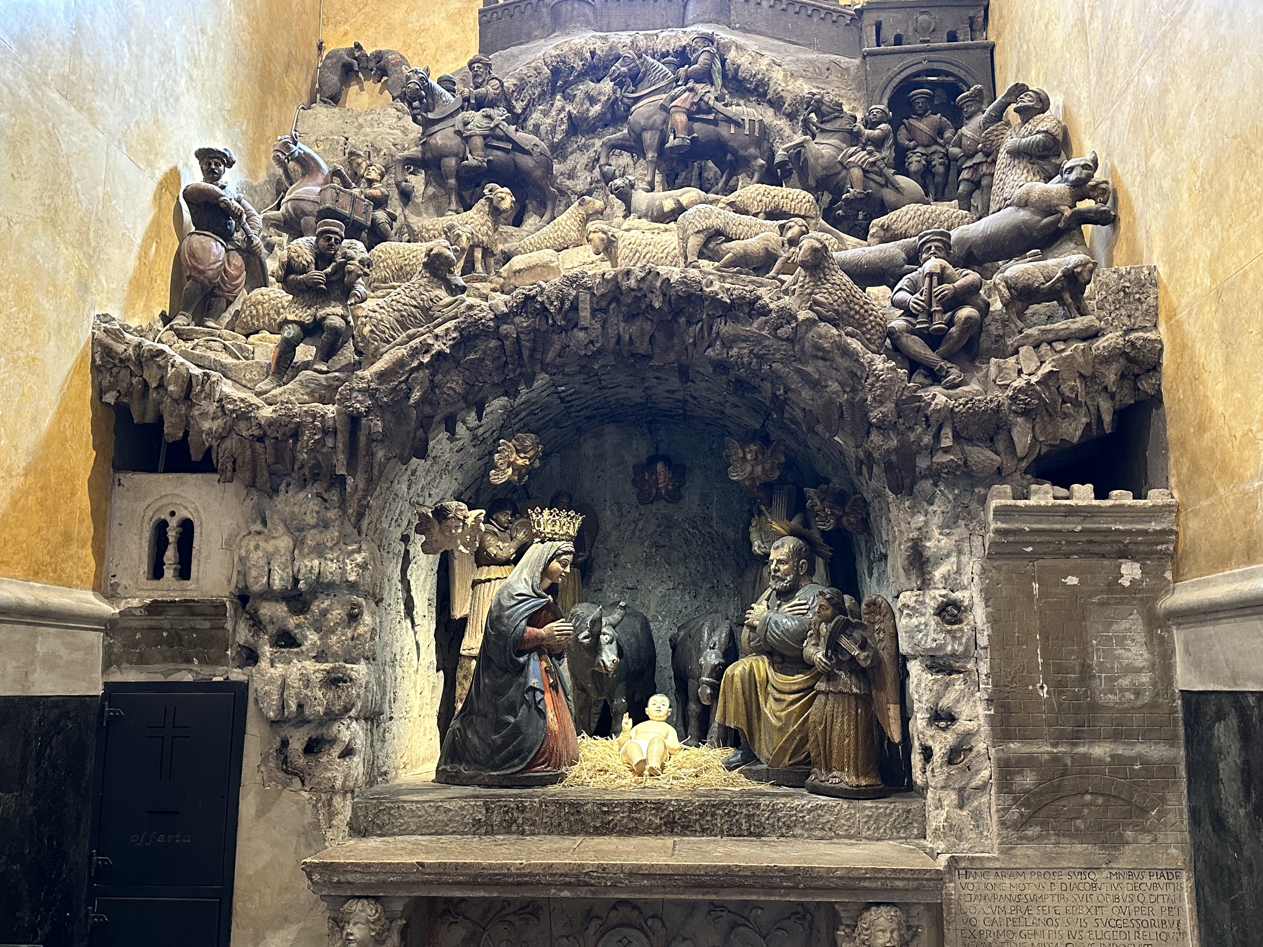 We went inside the important town Church di Santa Maria Assunta and saw a real marble altar with lovely wooden choir, a beautiful organ, and an exquisite sculpture of the Nativity by Stefano da Putignano. Apparently it is so well regarded that an Italian stamp has been made of it.