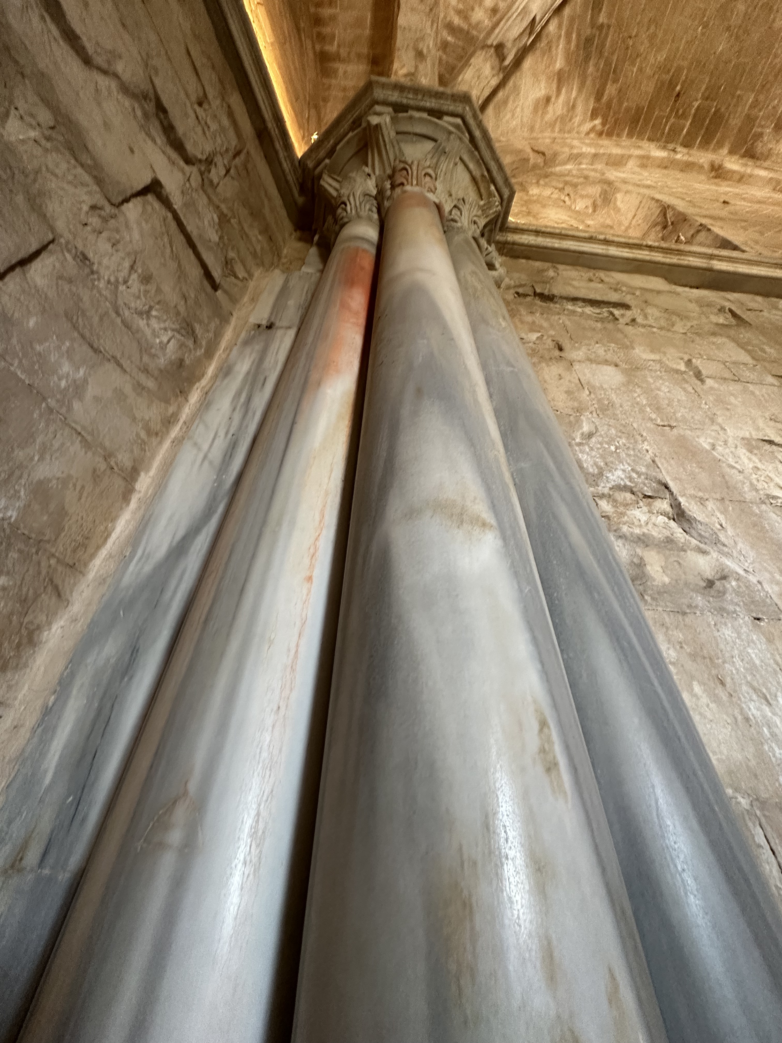 The Fish Mongers are all shouting about their products and wanting us to taste and buy different fish. Above the street was a roof of colored umbrellas that provide some shade and rain protection. Then we followed Rick Steves walking directions and saw several ancient buildings as well as churches and underground antiquities.