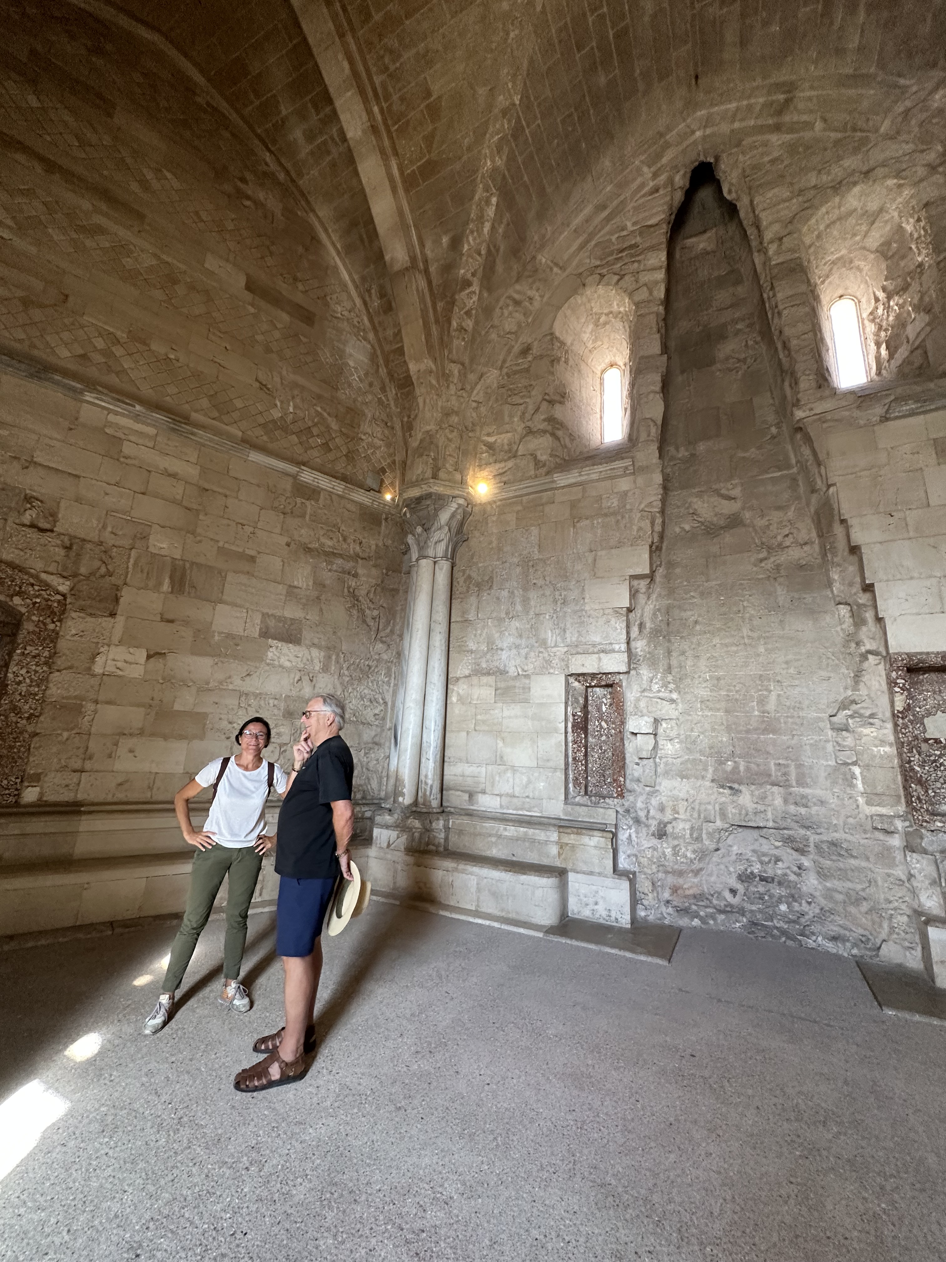 Entrance to the palaceCurrent owner of the palaceFamily alter with many relicsFormal dining roomCeiling in the Ball RoomLynne, Julia and Al at the window to the CathedralThe Cathedral view behind Julia and LizThe Ball Room