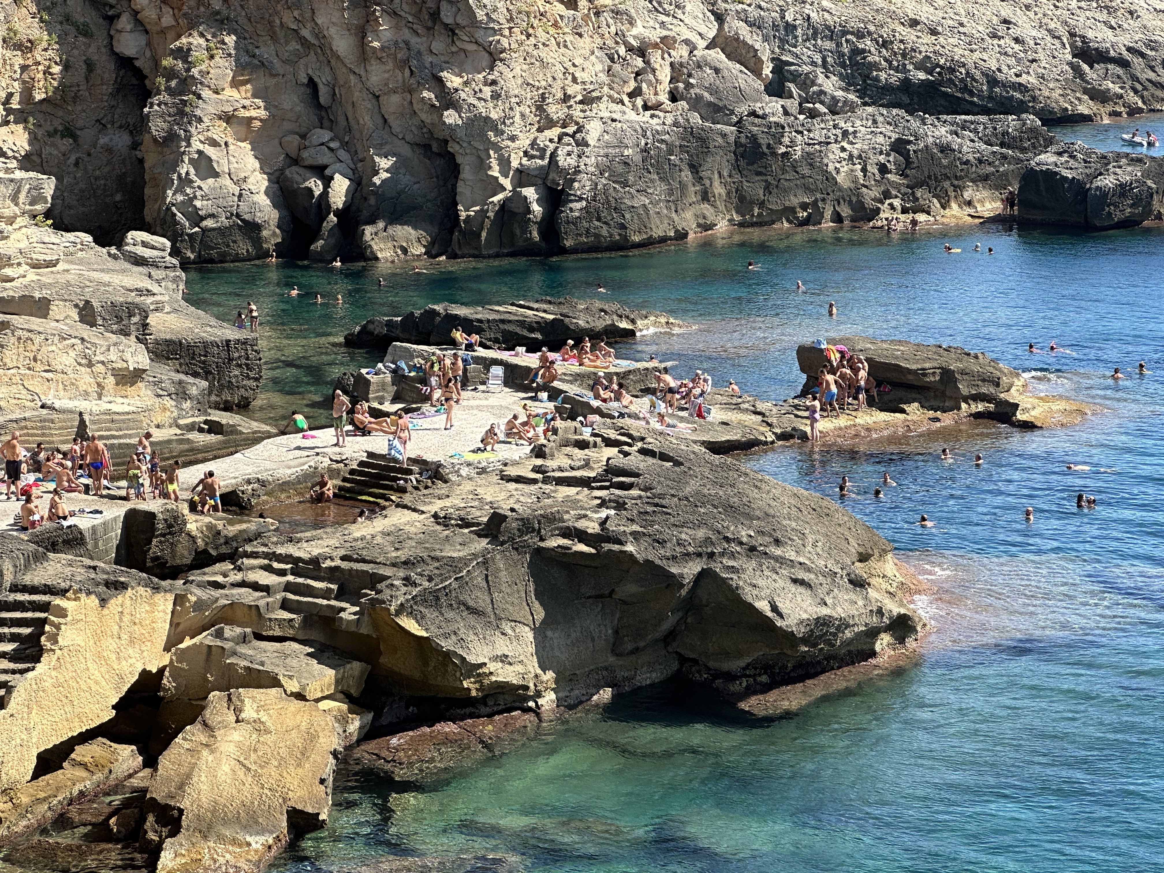 On our way back to Valletta, we stopped at the largest fishing village in Malta, called Marsaxlokk, to have some fresh fish. The colored boats in the port are called “Luzzu” and are Maltese traditional boats. They have small eyes painted on their bow that are supposed to protect the fishermen and bring them good luck. We acth ordered a different fish and enjoyed a fine repast.
