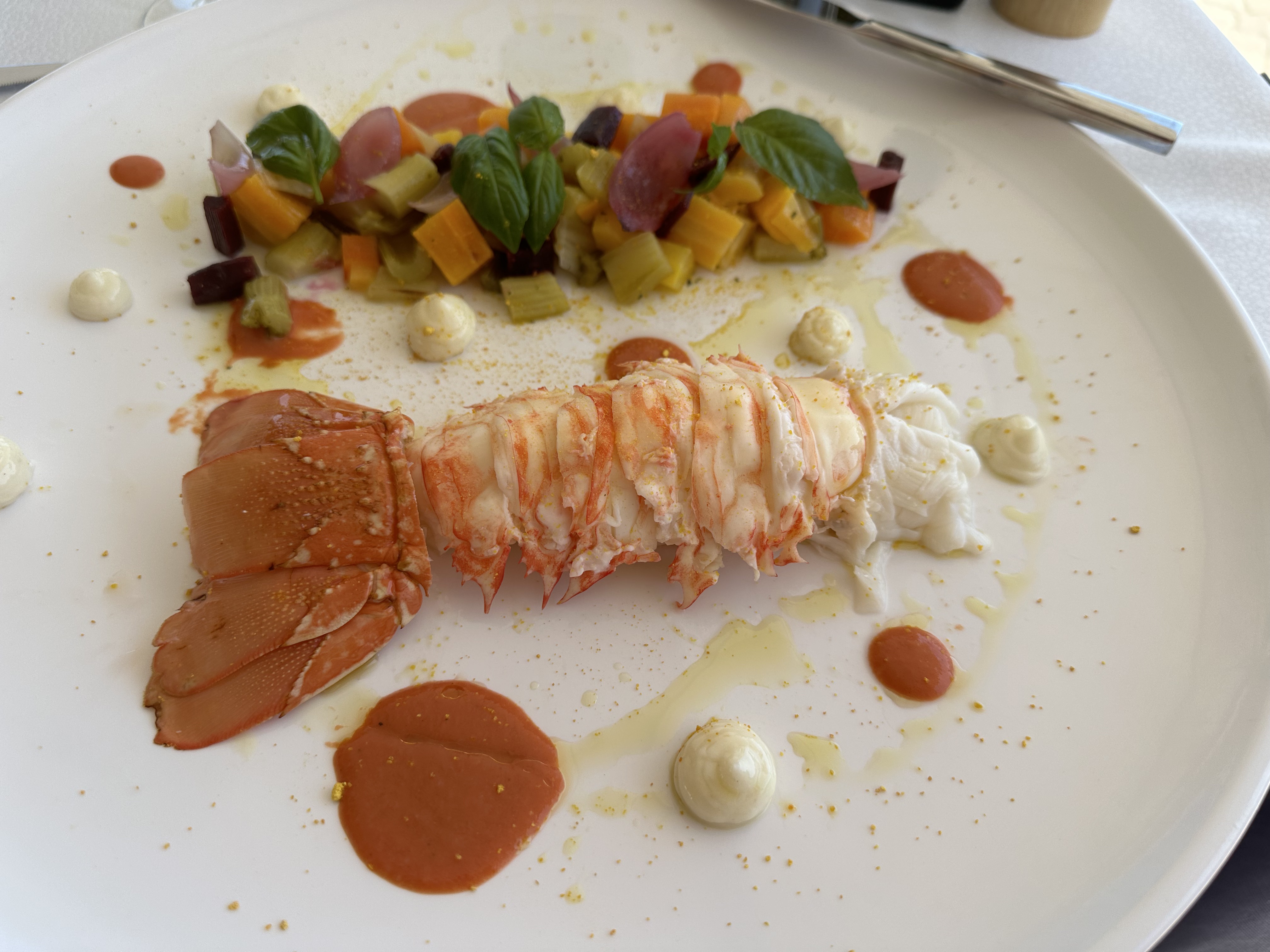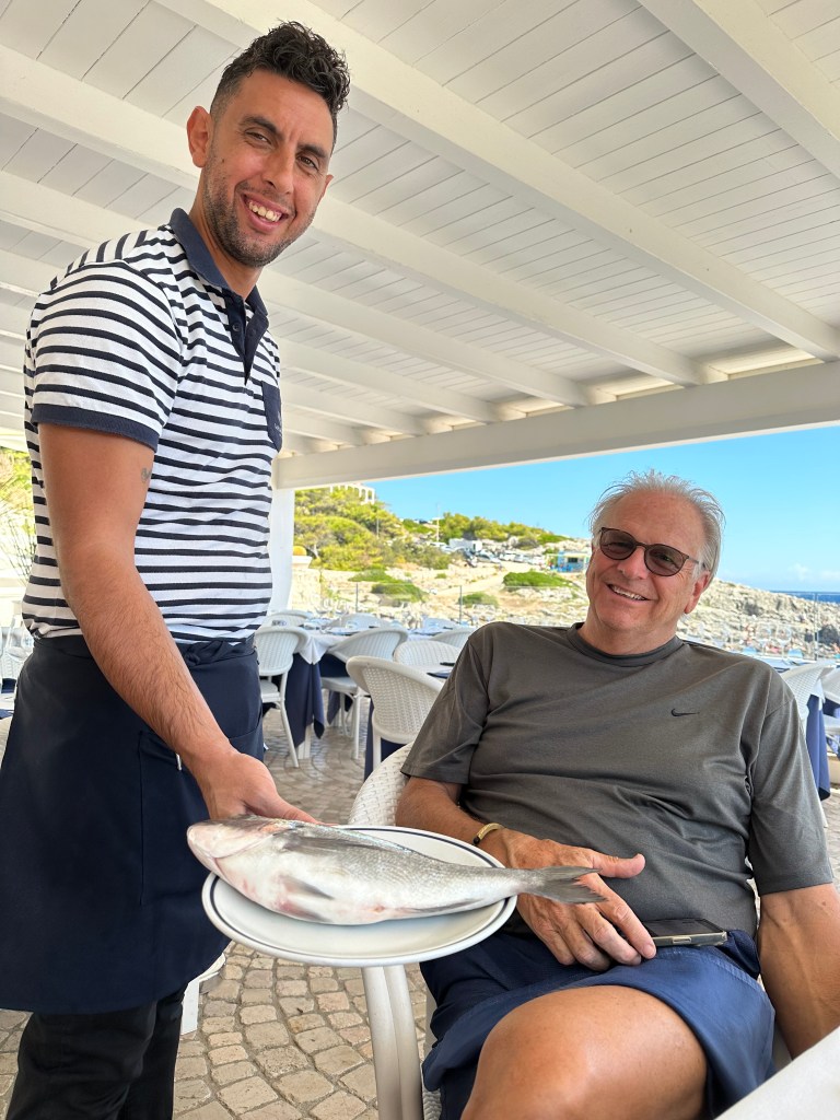 Mark selects a Sea BreamMy lobster arrived perfectly steamedA delicious salad to go with the lobsterOverlooking our restaurant Lo Scola