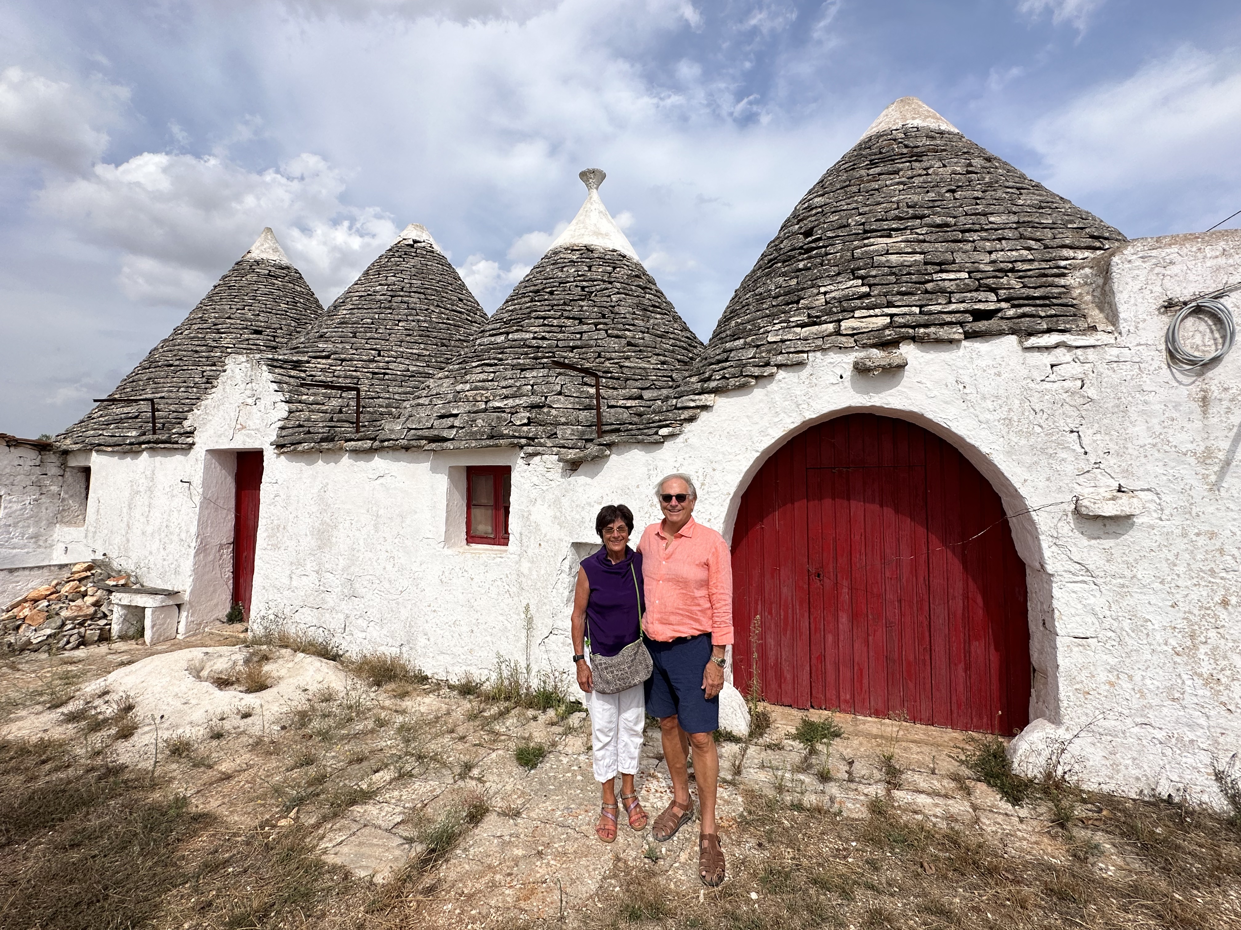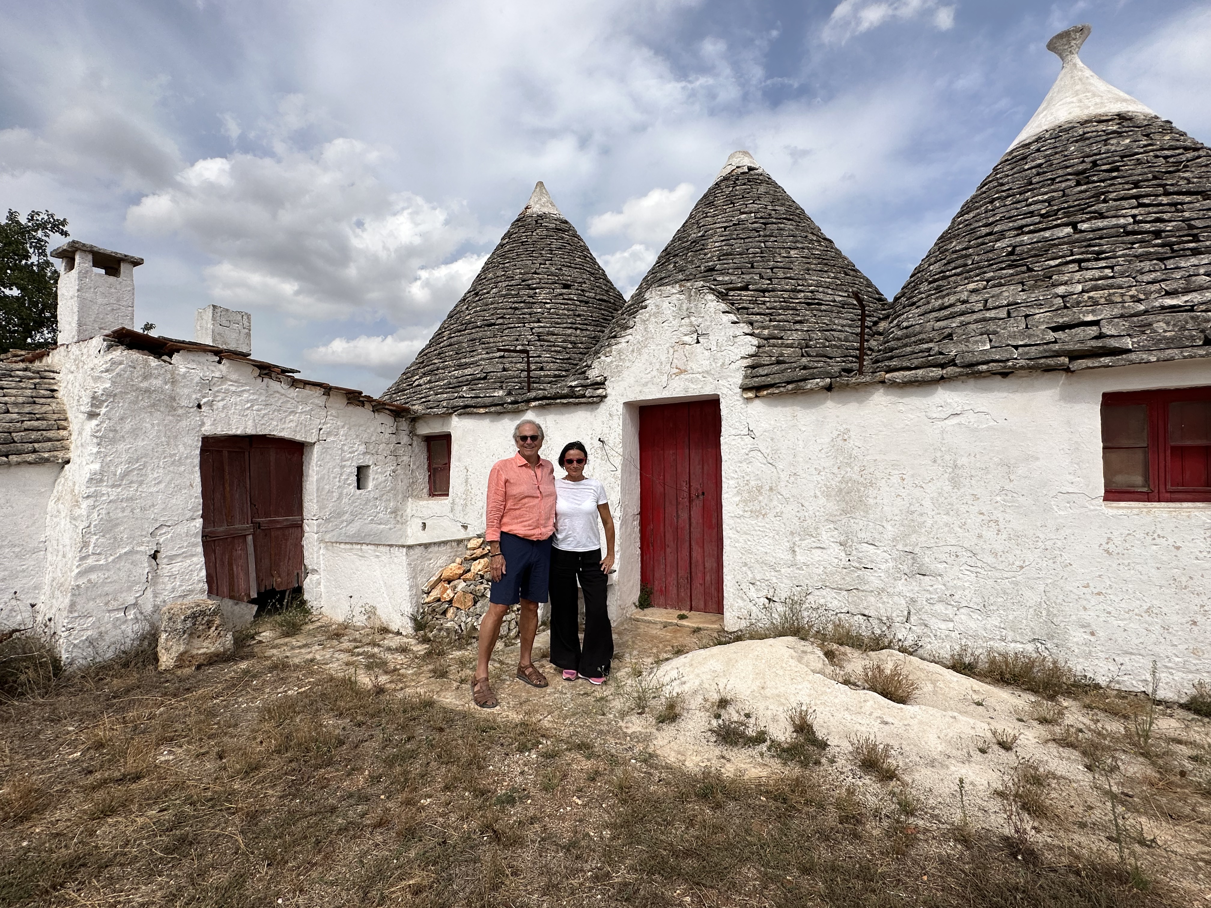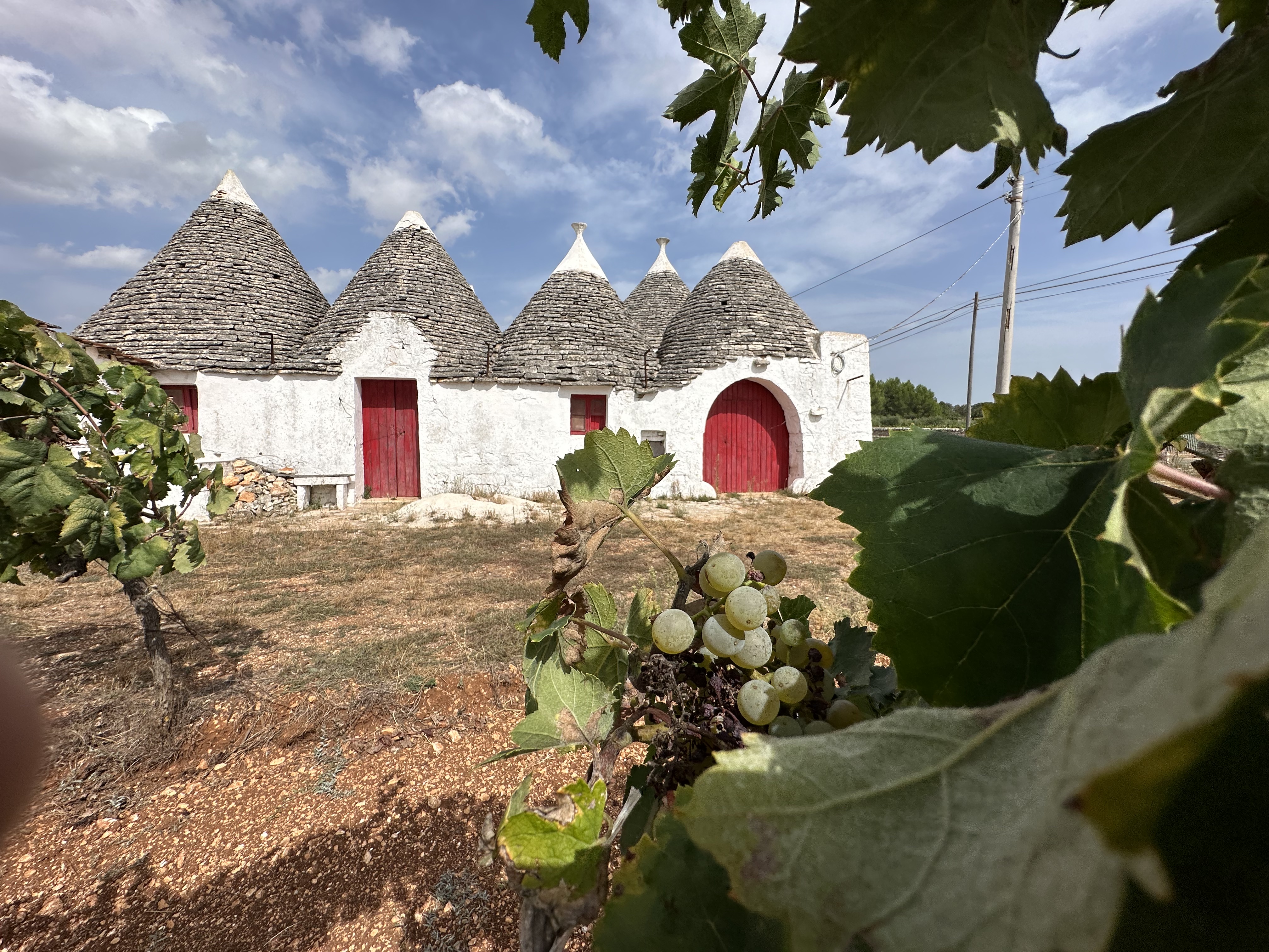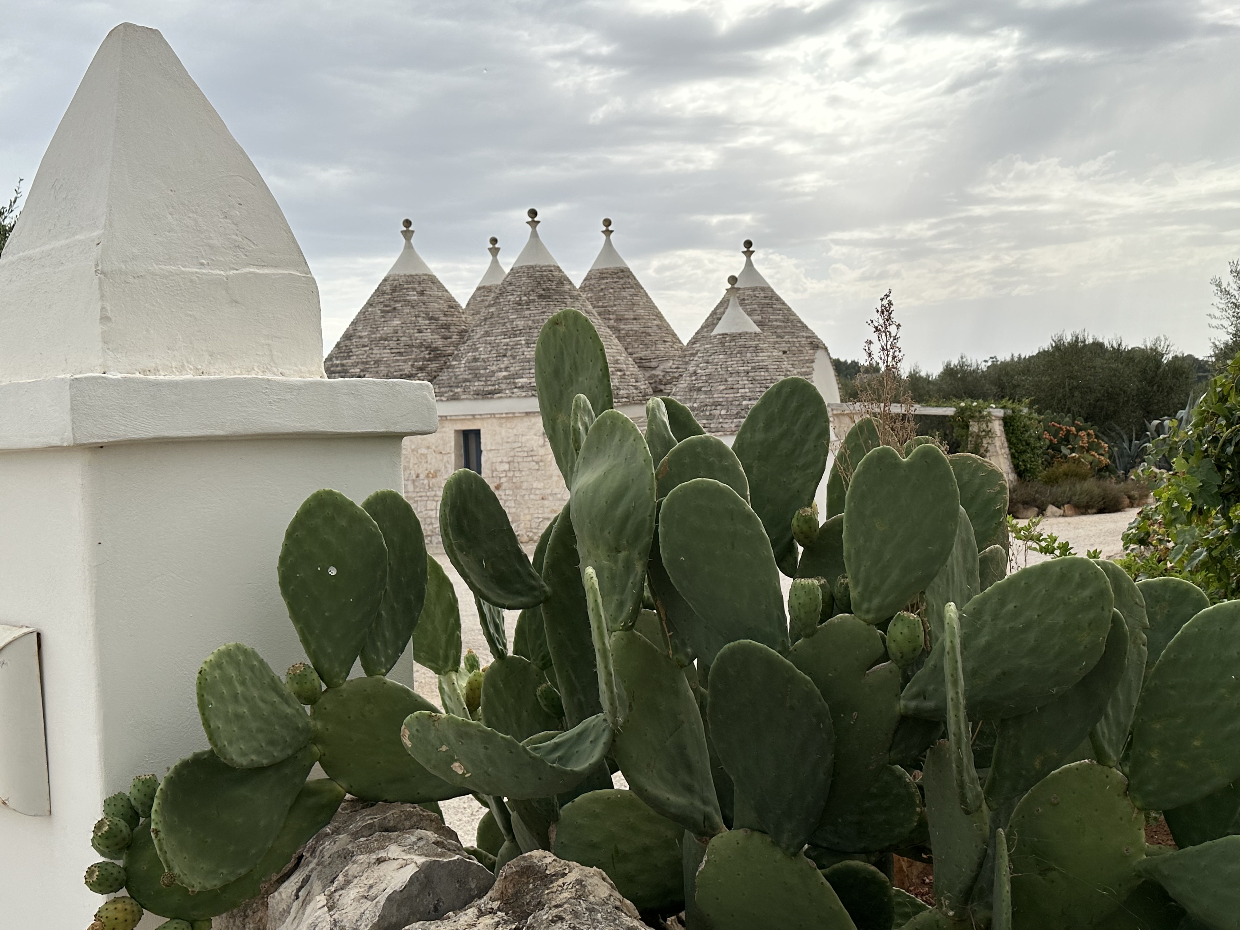 We spent our last full day in Puglia with Silvia visiting 2 more towns in the Valle d’Itria and watching a cheese maker create his specialities of mozzarella and burrata cheeses.. The landscape consists of karst Murgia hills and large caves covered in dense vegetation and a cultivated plateau with red terrain that extends to the sea. The countryside is dotted with conical, white stone structures called trulli.
