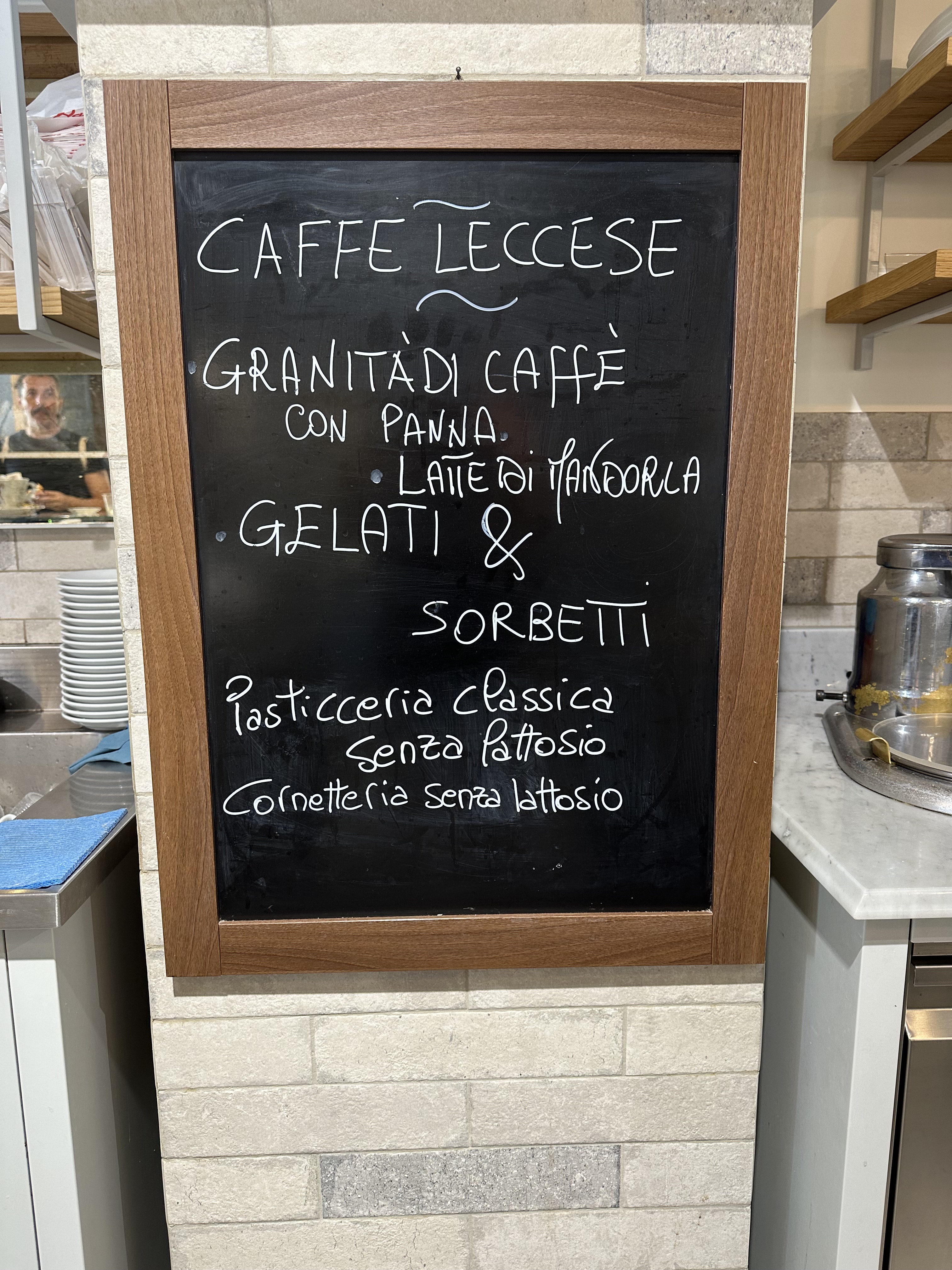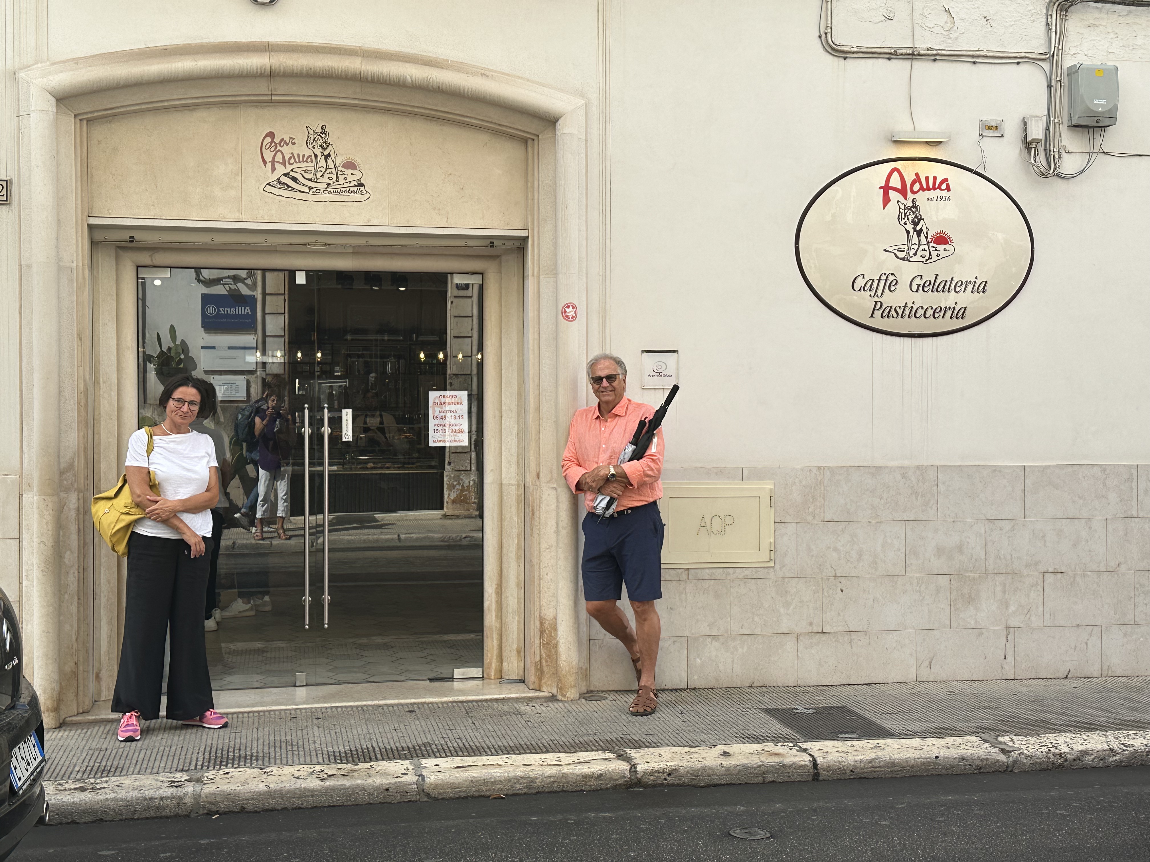 Our first stop in town was at a cafe shop called Bar Adula in Marina Franca. It was Silvia’s favorite place and we could understand why. The coffee choices were extensive and the best was a cold coffee drink called Granita Di Caffe that had an iced coffee mix at the bottom with dense whipped cream on top. Even I had to admit that it was excellent.