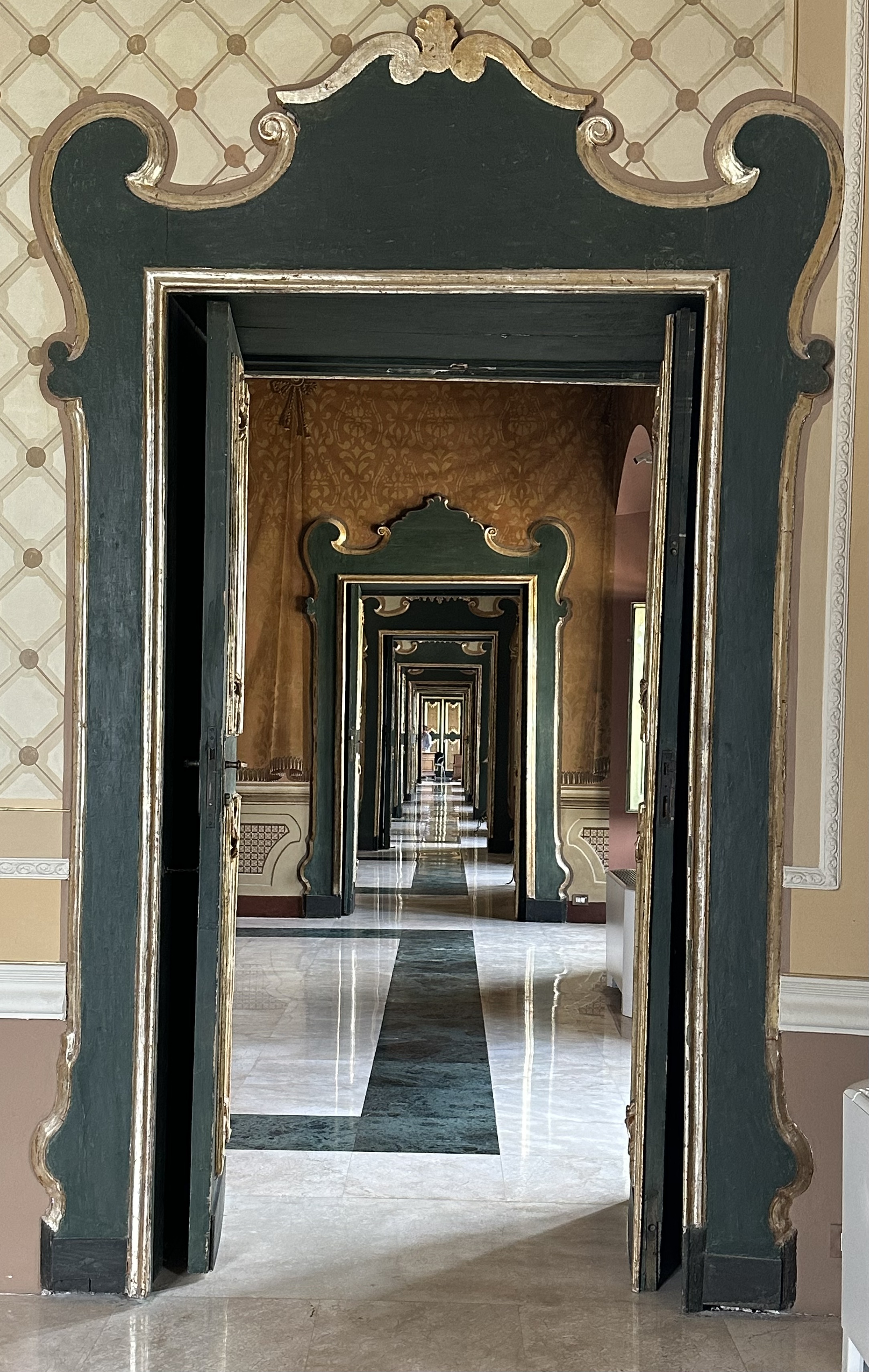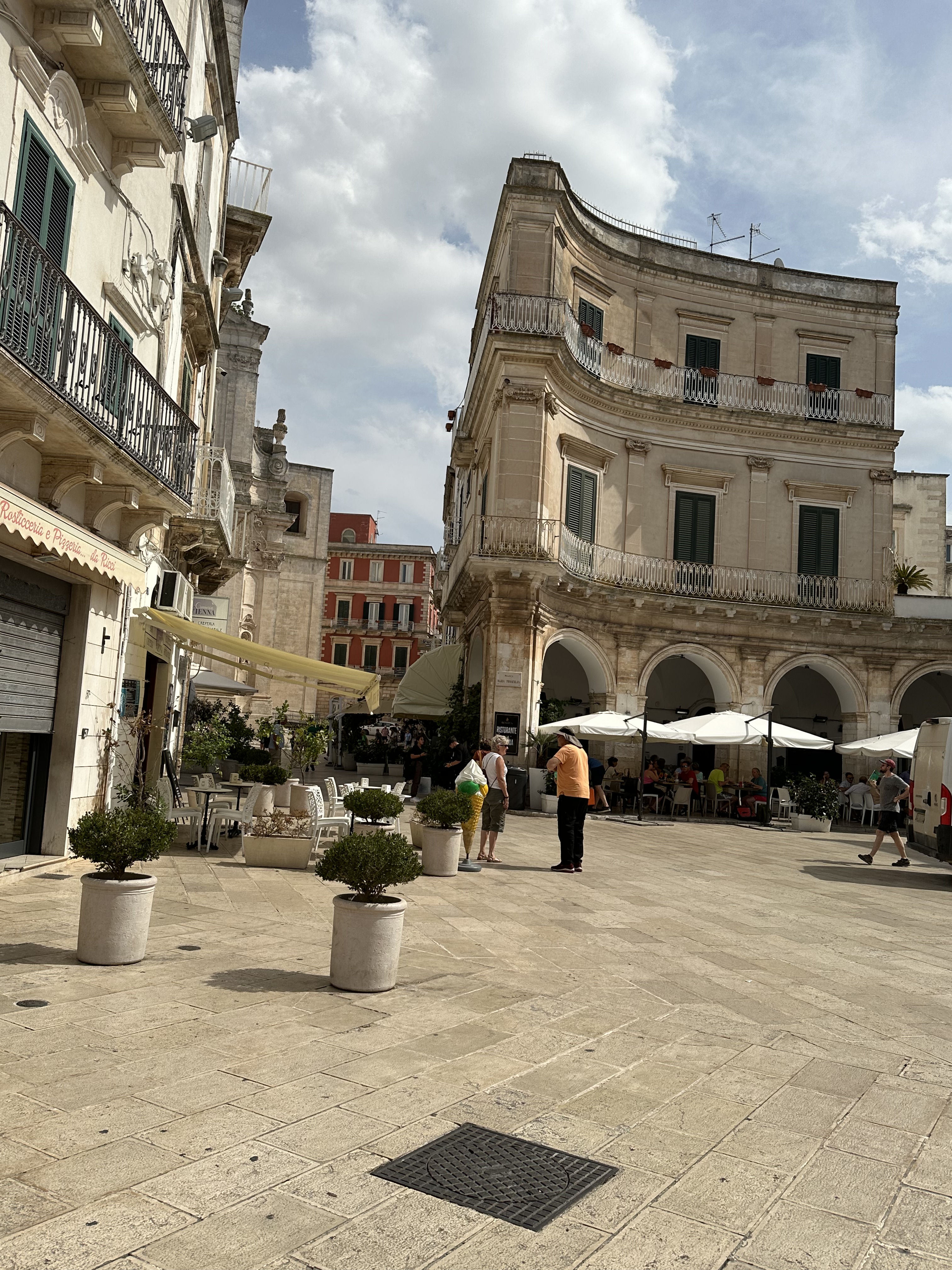 We explored the Palazzo Ducale, a huge building that had belonged to the Caracciolo family of Naples. This family administered the town from 1600 to the 1800’s. Many rooms were frescoed with scenes from mythology and the Bible. Several doors were linked together to create a telescopic perspective with a baroque effect. An annual opera festival takes place here that is very popular, the Itria Valley Festival.