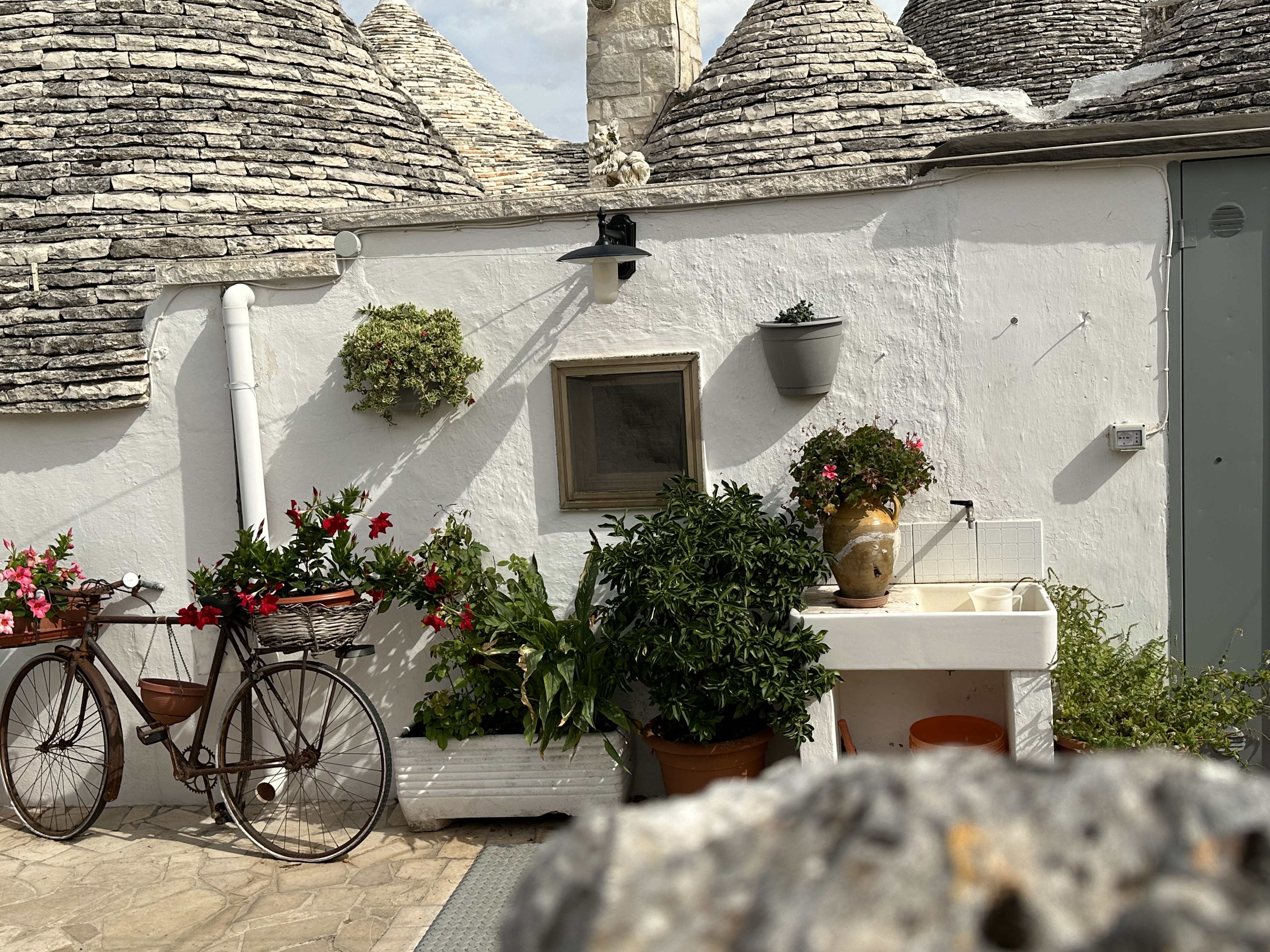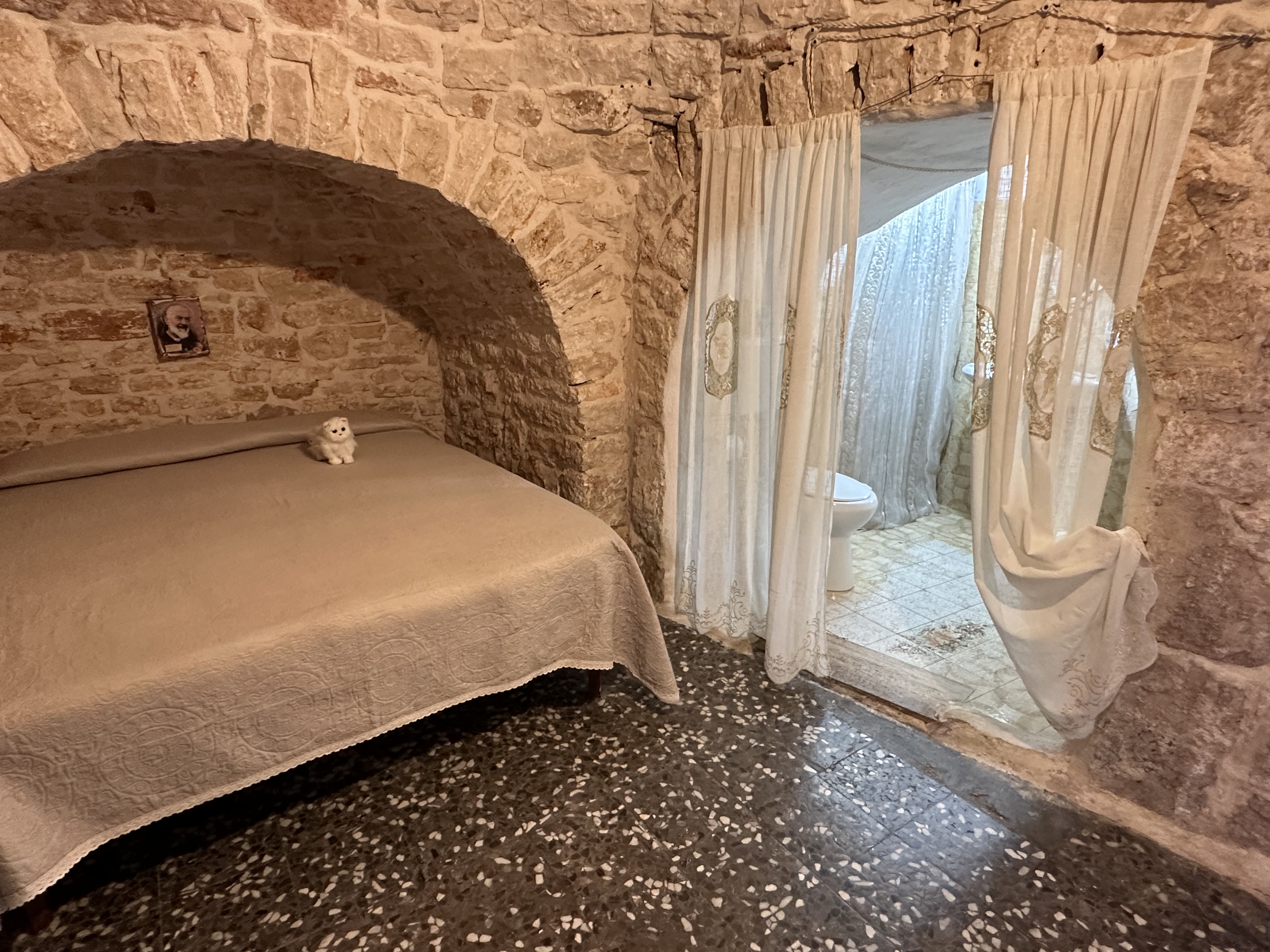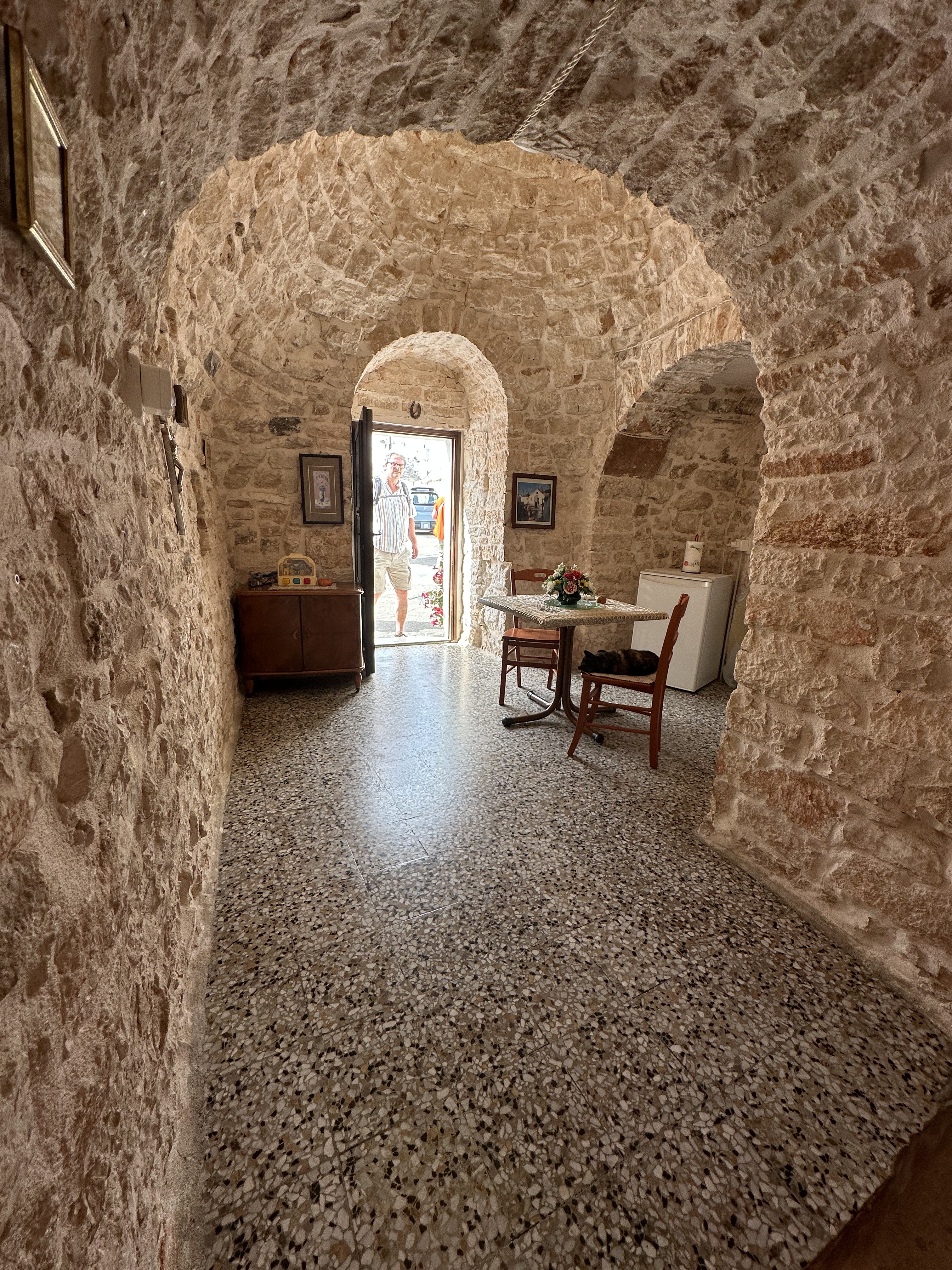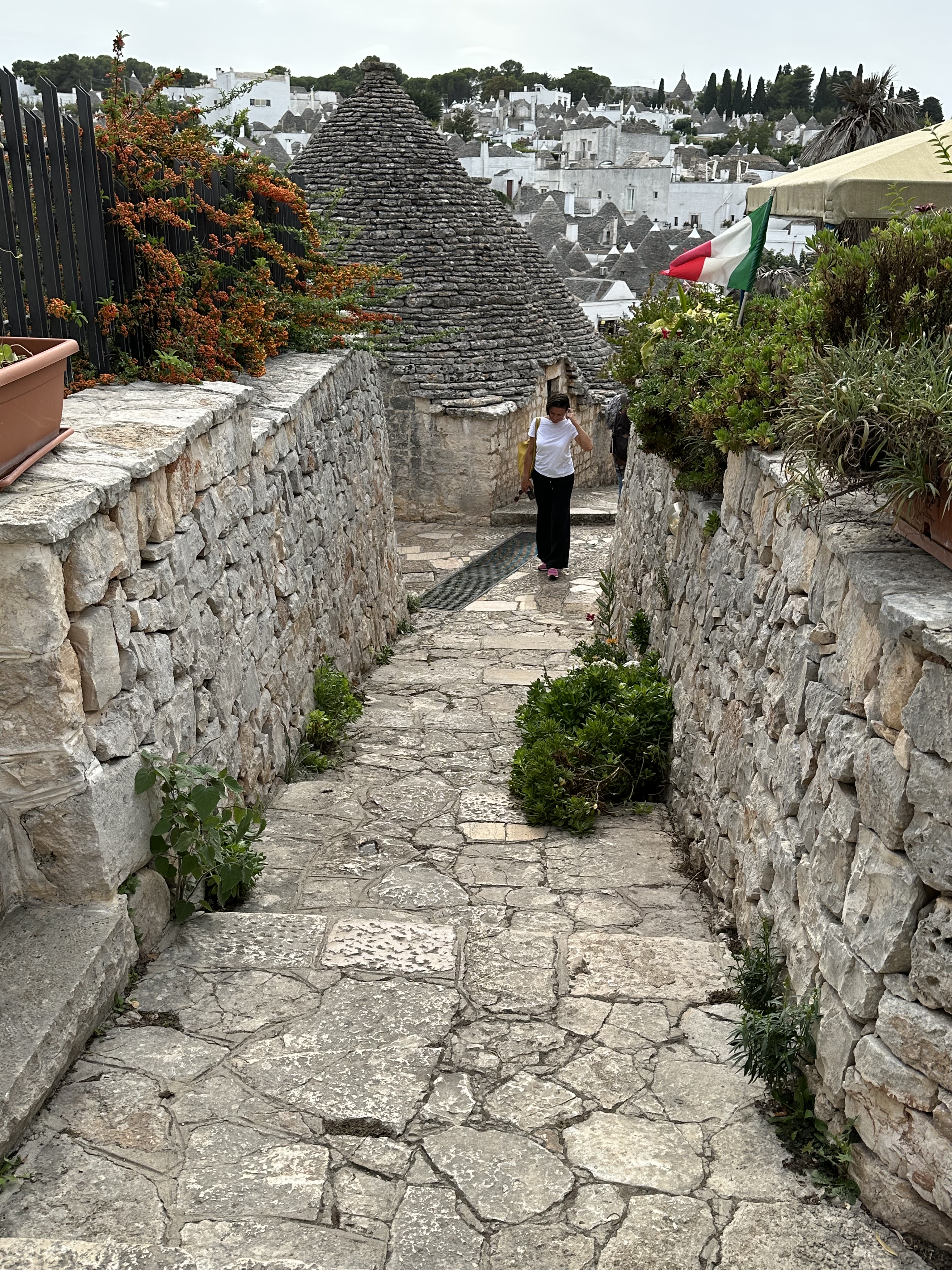We went into the town and found a Trullo house that the owner uses to attract tourist money. She does not live there but spends her days there to show off the place. Remodeling an old historic Trullo with a modern bathroom is illegal, but she has managed to get away with it because she did it before the restrictions took place.