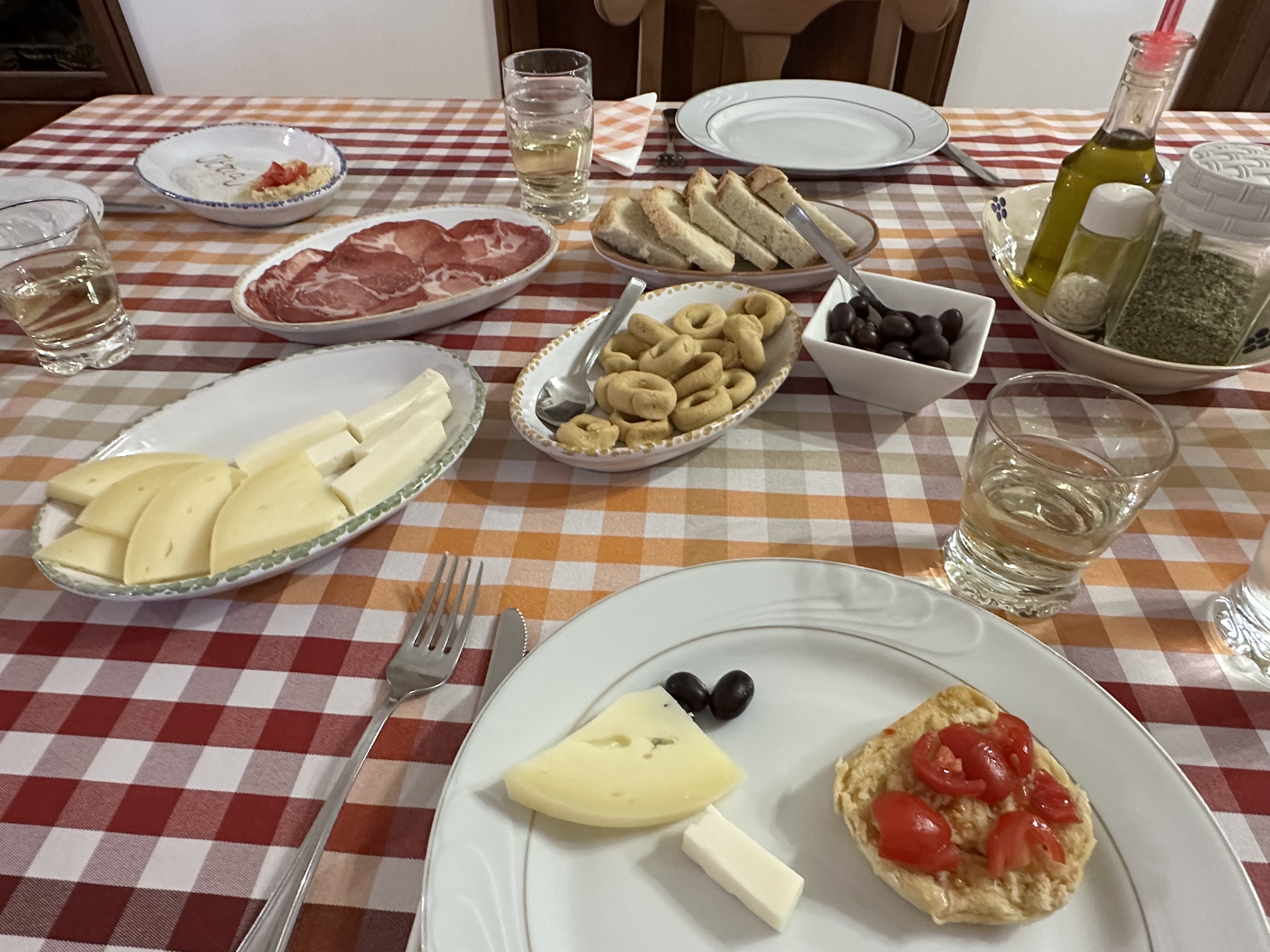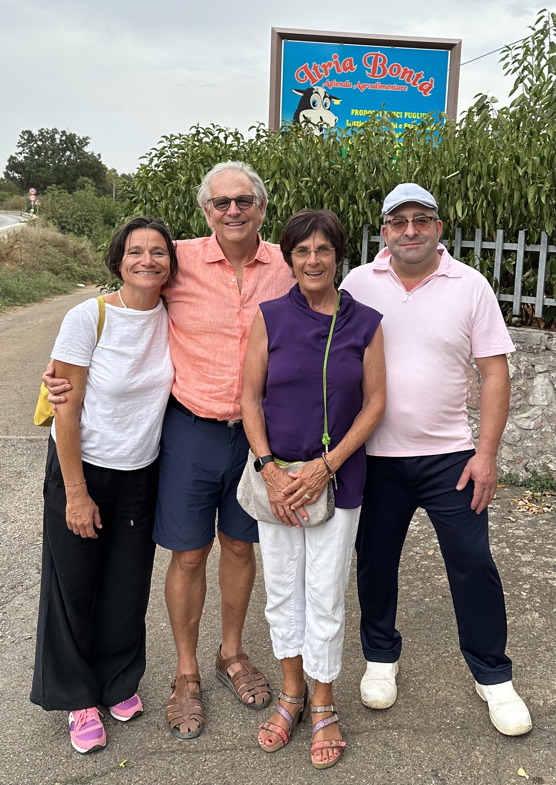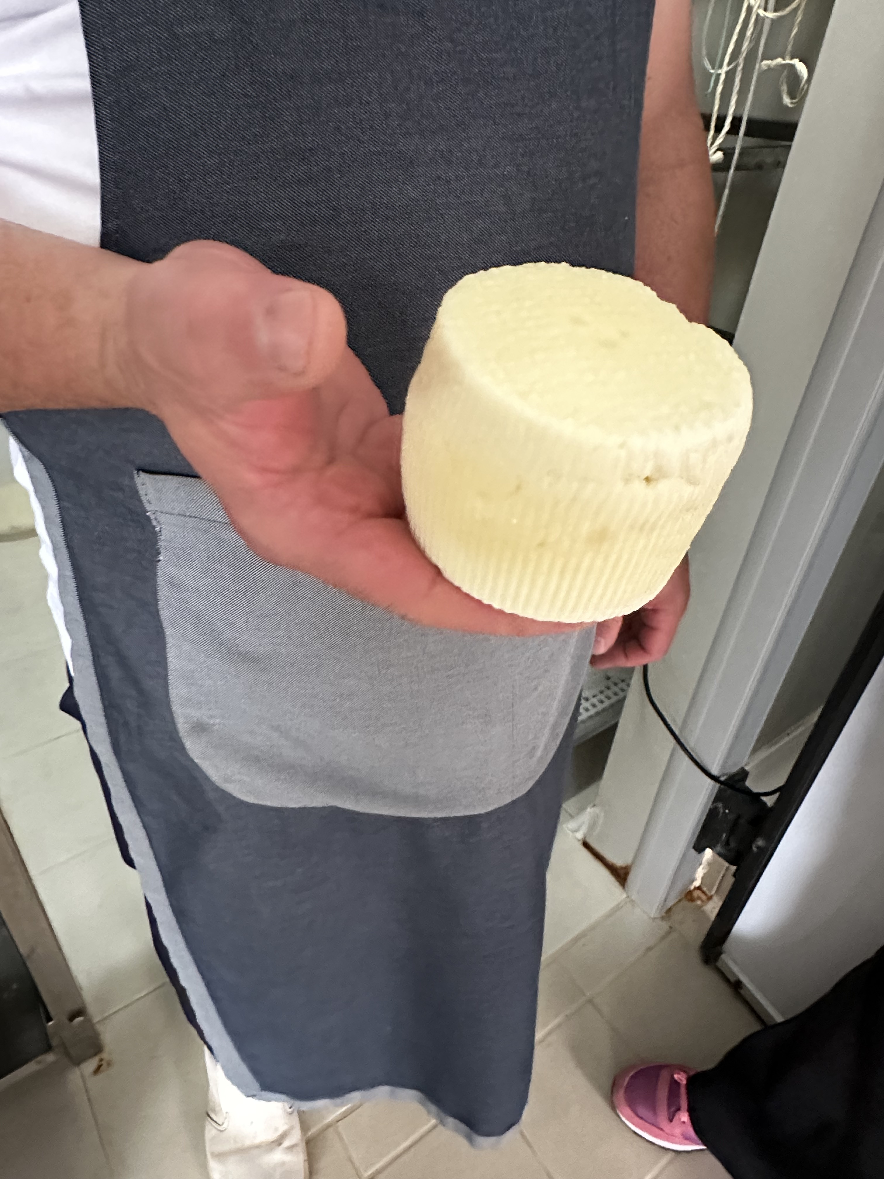 From Albebello we headed into the countryside to a cheese factory called Itria Bonte and the home of the cheese maker, Georgio, He was a man of few words but oh could he make cheese. He took us through the process of making Mozzarella cheese, as well as burrata, which I much prefer. Mark, on the other hand, prefers mozzarella. I got so involved in the process that I forgot to take photos until we were standing with the finished products. After the demonstration, Georgio and his wife served the three of us lunch of a selection of cheeses, homemade salami, capicola, home made olives and wine and cheese cake for dessert.
