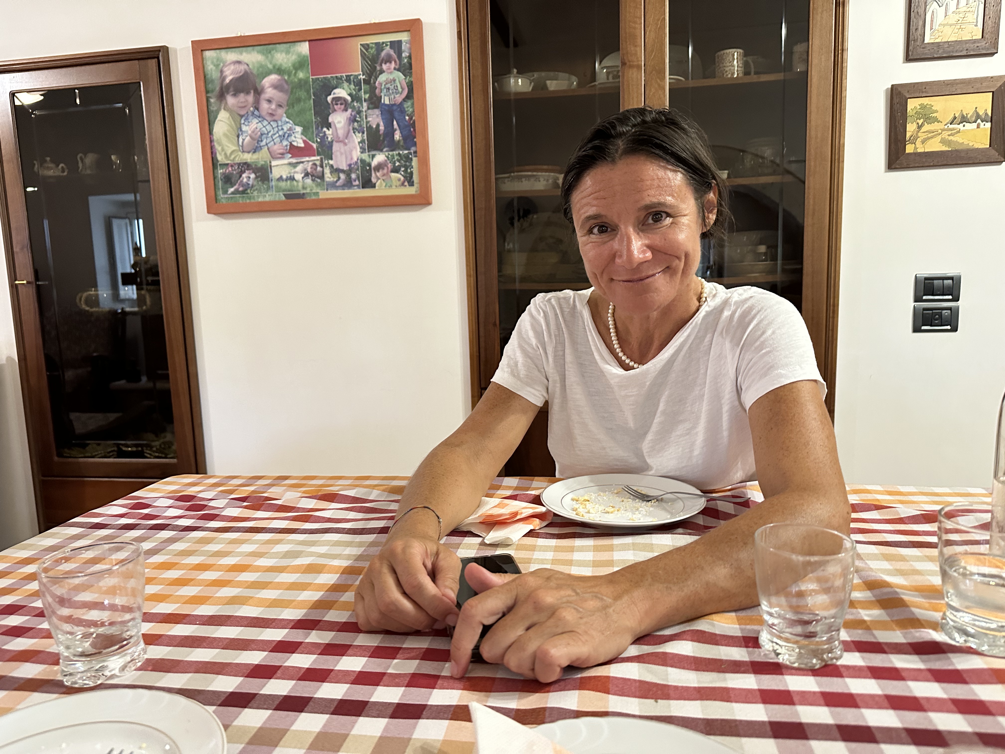Along the walk Peppe took us to an ancient underground river and spring which were fascinating to see. He finished the tour at a café that served us a variety of ice creams and coffee drinks. I tried to get the drink we had had with Silvia a few days before, but it was only a partial approximation. While at one café, I noticed it was very close to the Osmundo hotel we had stayed in a few nights before. I wanted people to see how unusual it was, so I invited a few ladies and got in to see the public rooms. They enjoyed the art as much as we had. Once we were finished with Peppe, we drove back to the villa to enjoy the pool and visit the rest of the day. In addition to sunshine, the sky blessed us with several sprinkles of rain drops. No one was bothered by the rain. Most everyone stayed at the villa for dinner. It is hard to keep track of who was doing what, but everyone seems to be having a good time.