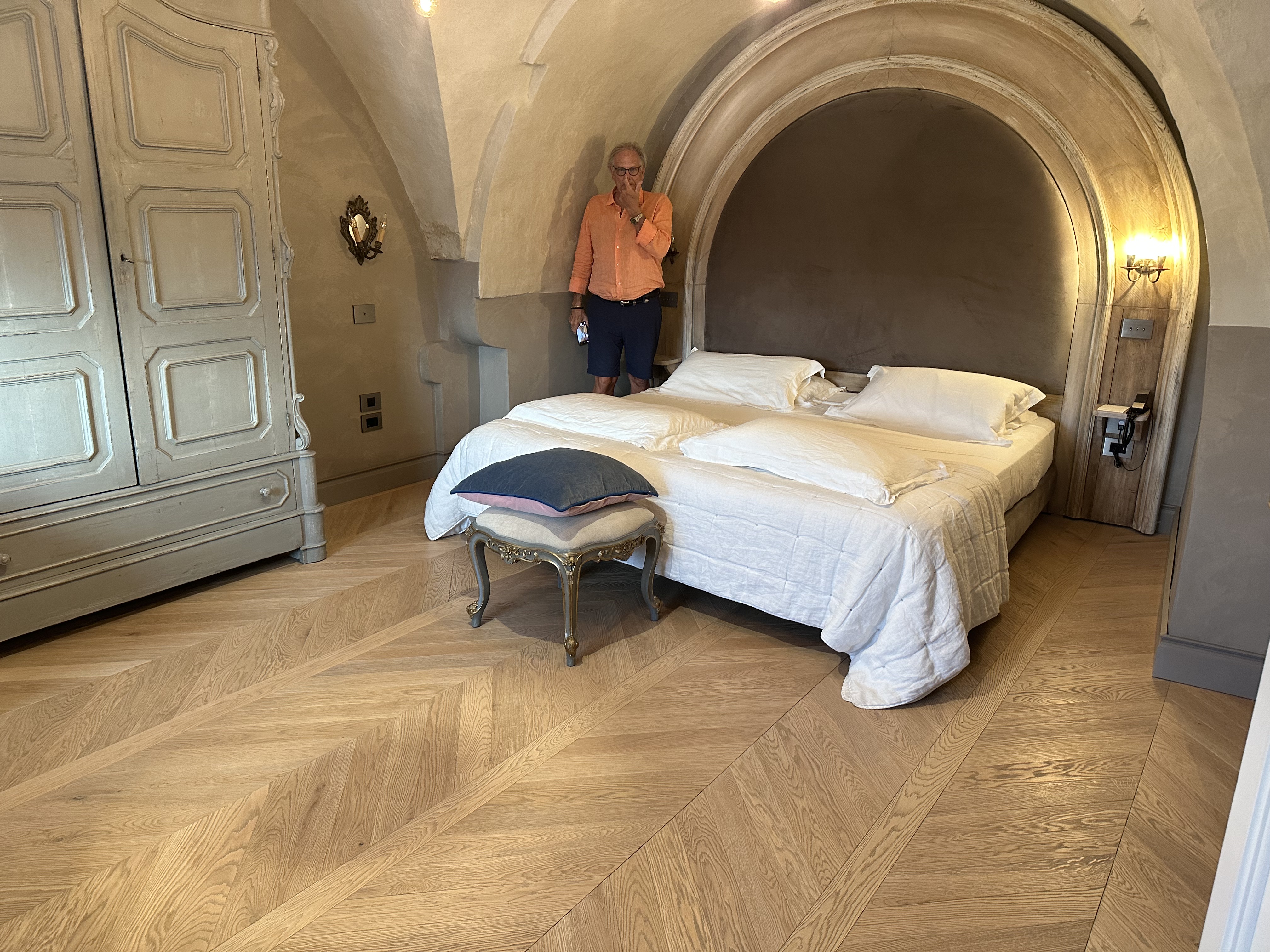 The evening entertainment was created by all the participants and choreographed by Terry. Mark and I were kept in the dark. First up during the cocktail period was a history talk about the Villa given by the owner’s wife, Gabriella. We were all captivated by her story and several of us accepted her invitation to walk the property in the morning before departing. A few things we learned were that the property is 250 acres and the family has owned it for 200 years. Originally it was built in the 1300 BC by the Greeks. It was later overtaken by the Romans and other cultures before becoming a monastery in the late 1700’s. In the early 2000’s the current owner remodeled the buildings into a rental facility, which is how we came to use it. They still occupy a portion of the property for their own personal residence.