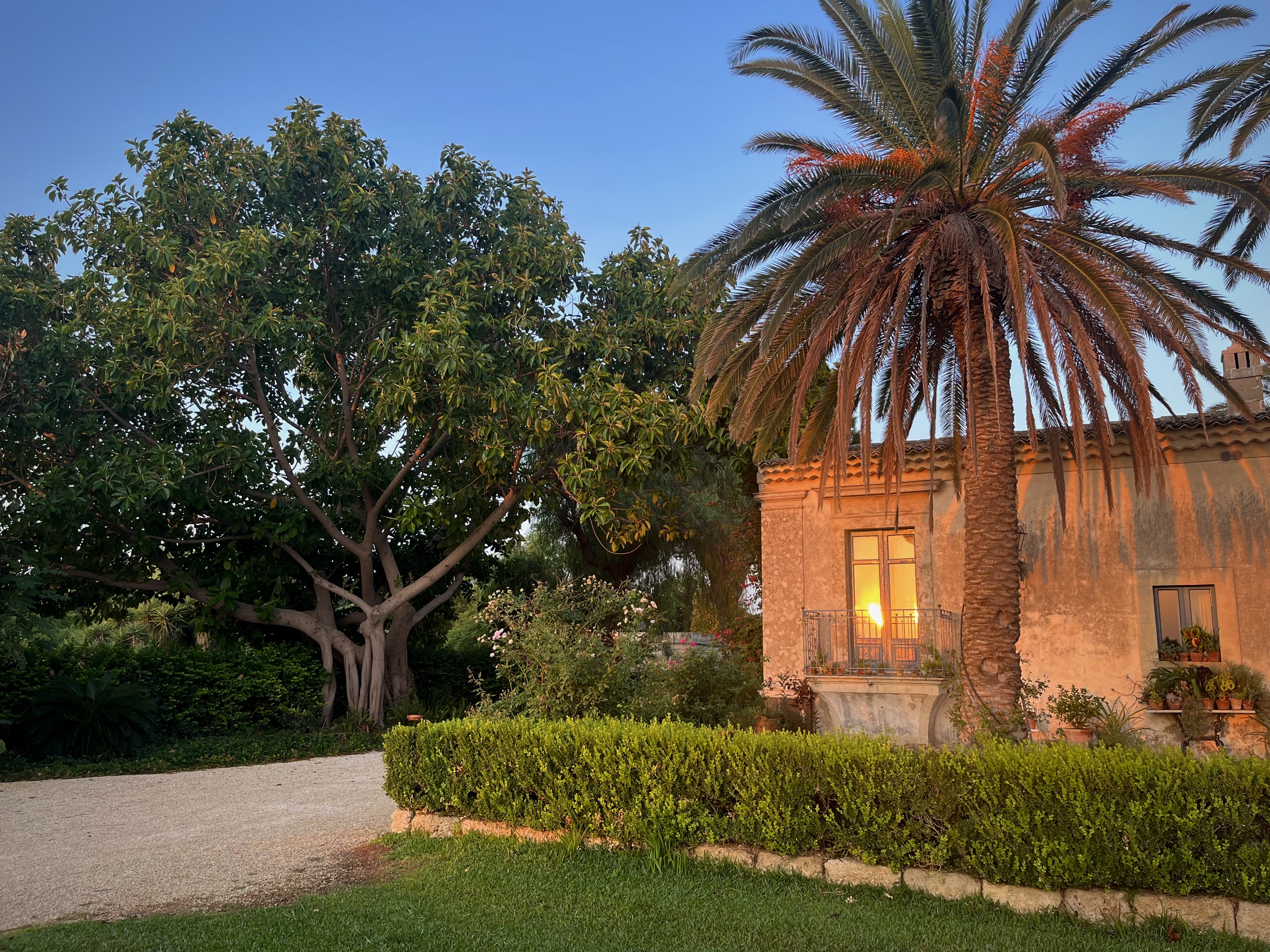 Sunset on the villaSunset on an entry gateEvening twilight at the villaMt Etna on a very clear dayA view of the villaThe villa courtyard at nightA street in CataniaA favorite beverage Mark napping in front of his room. Another view of the villaLunch in the patio by the pool..