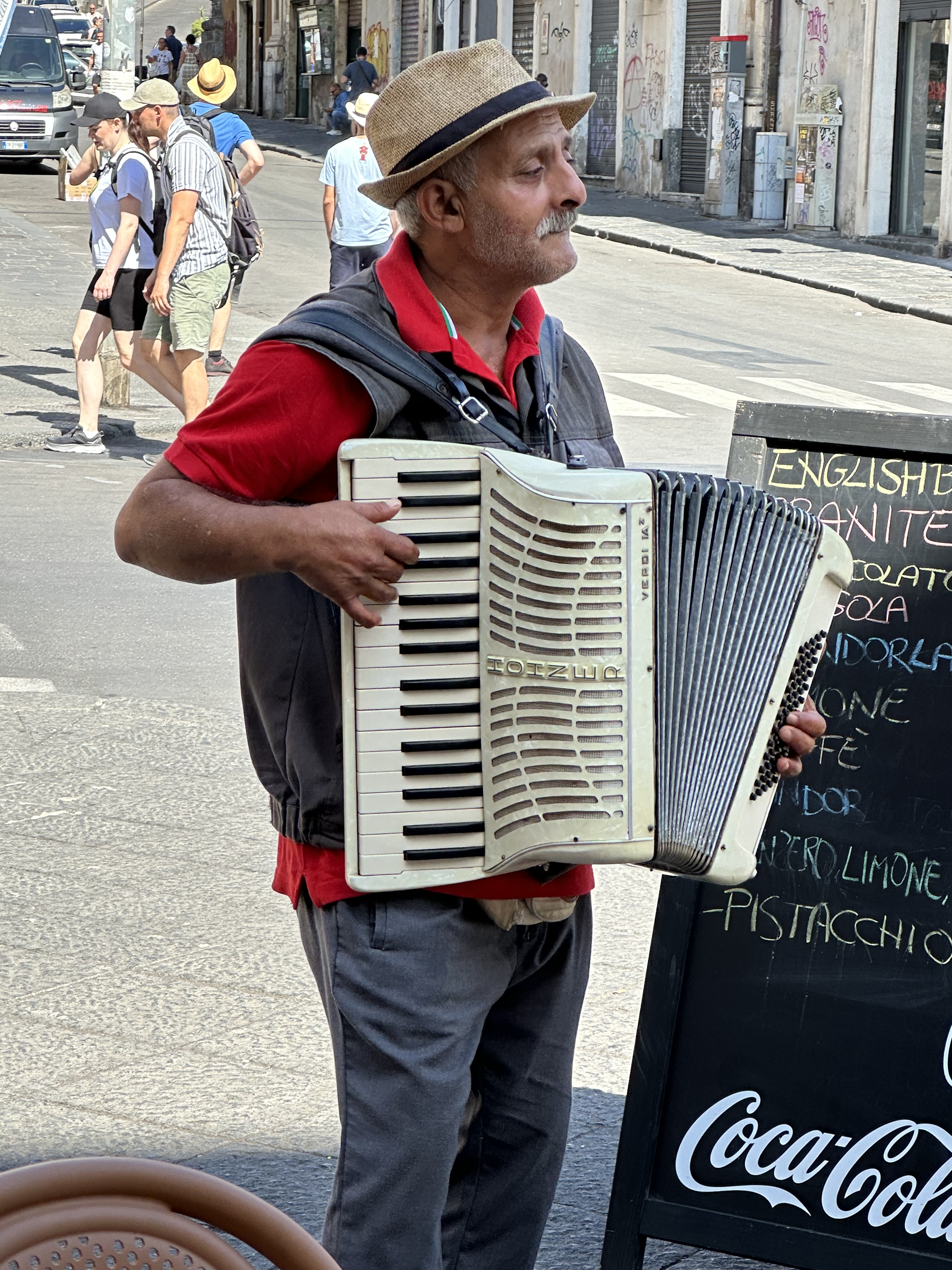 As everyone was booked for the lunch, we all carpooled and enjoyed the scenic drive to Ragusa. Parking was a bit of an issue for some, but eventually we all got parked and met up in the town. The beginning was a lovely garden at the bottom of the rather steep hillside town. After walking around the garden, we slowly walked up hill passing more shops, and trinket stores.