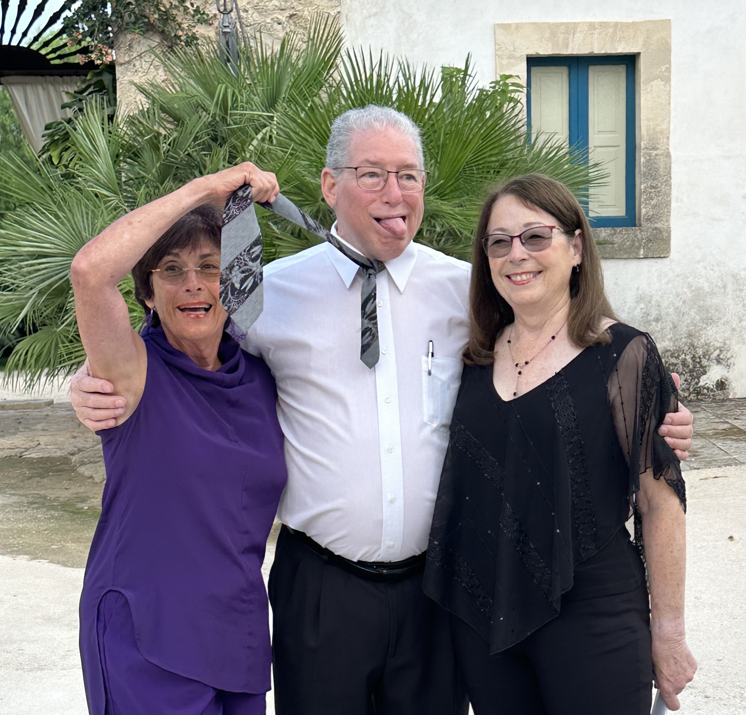 Mark and I busied ourselves deciding where to locate each of our 21 guests, putting name tags on each door and laying out T-shirts Mark had designed and made for everyone. Before we knew it, our first guests appeared and by 6:30 everyone had arrived, except Judith Ciphers, whose flight plans delayed her until mid-day on the 24th. The weather was very warm and the pool very inviting. As people arrived they put on their suits and hung out in the water. Everyone ordered cocktails and the party began.