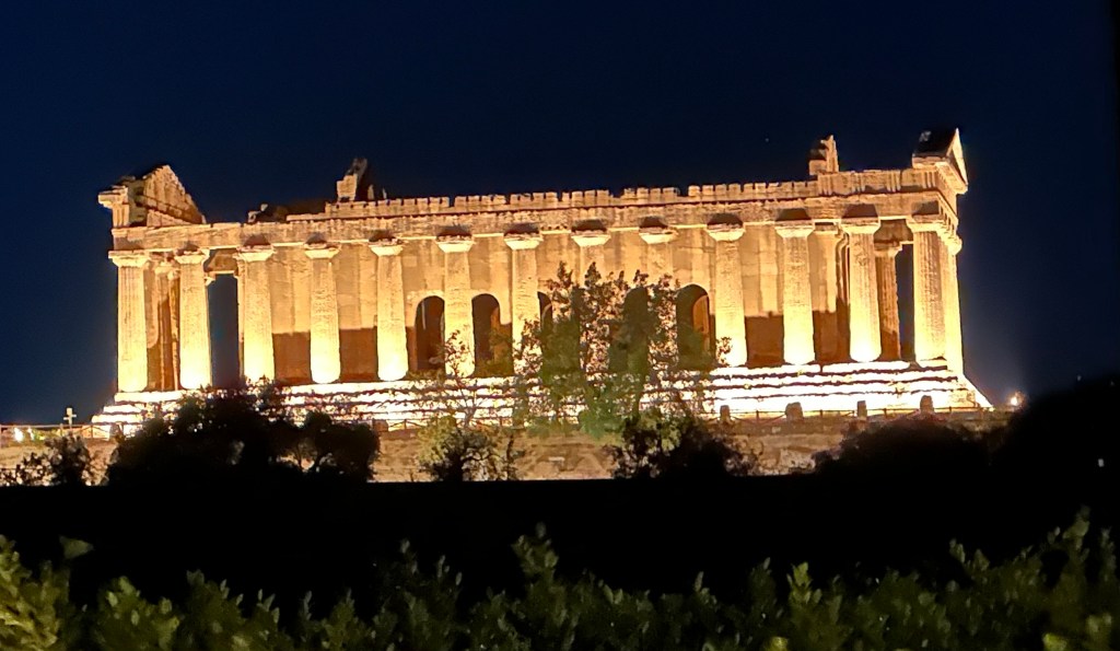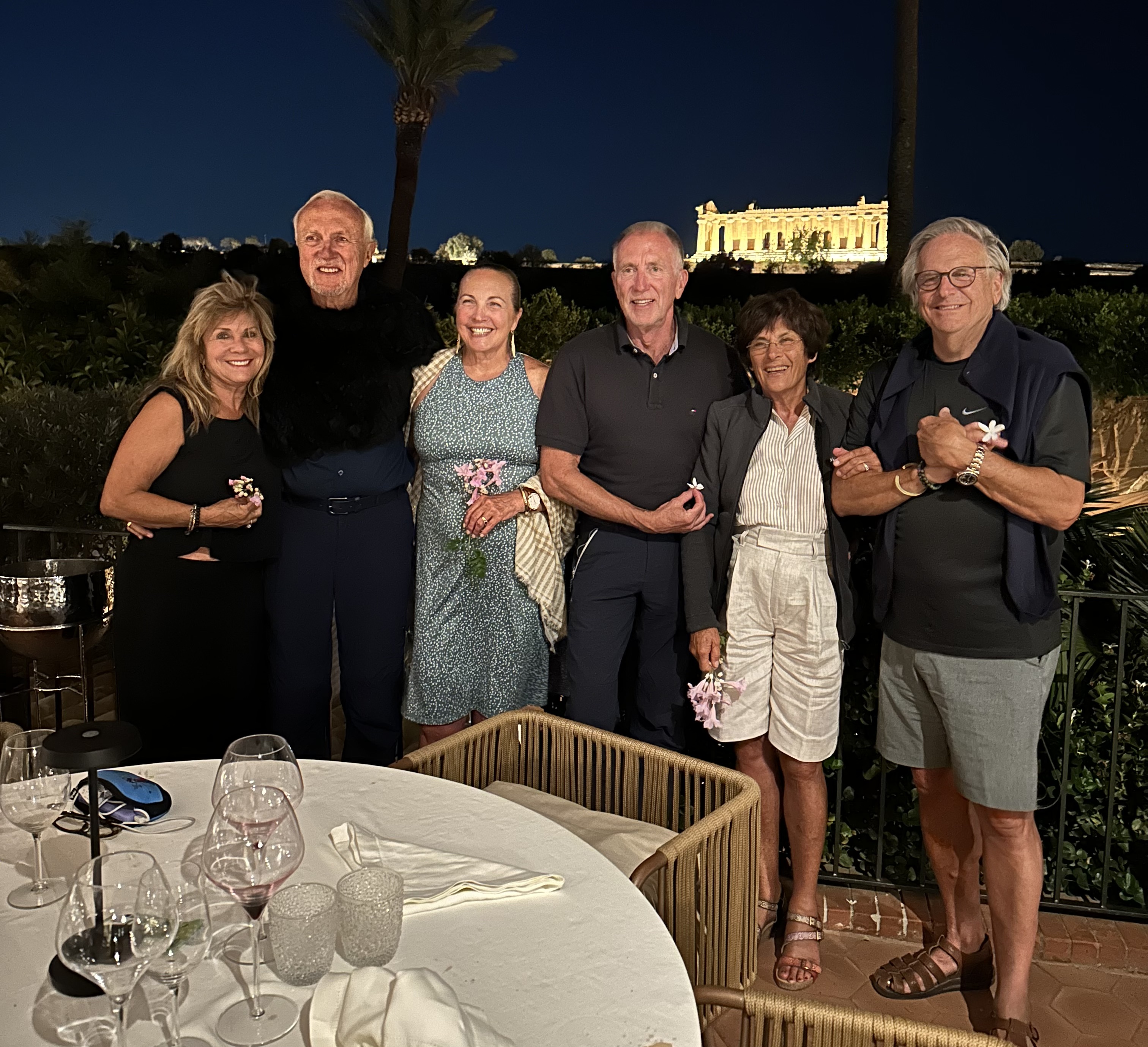 Temple of Athena, AgrigentoMimi, Phil, Catherine, Martin, Julia and Mark having dinner at our hotel looking up at the parthenon