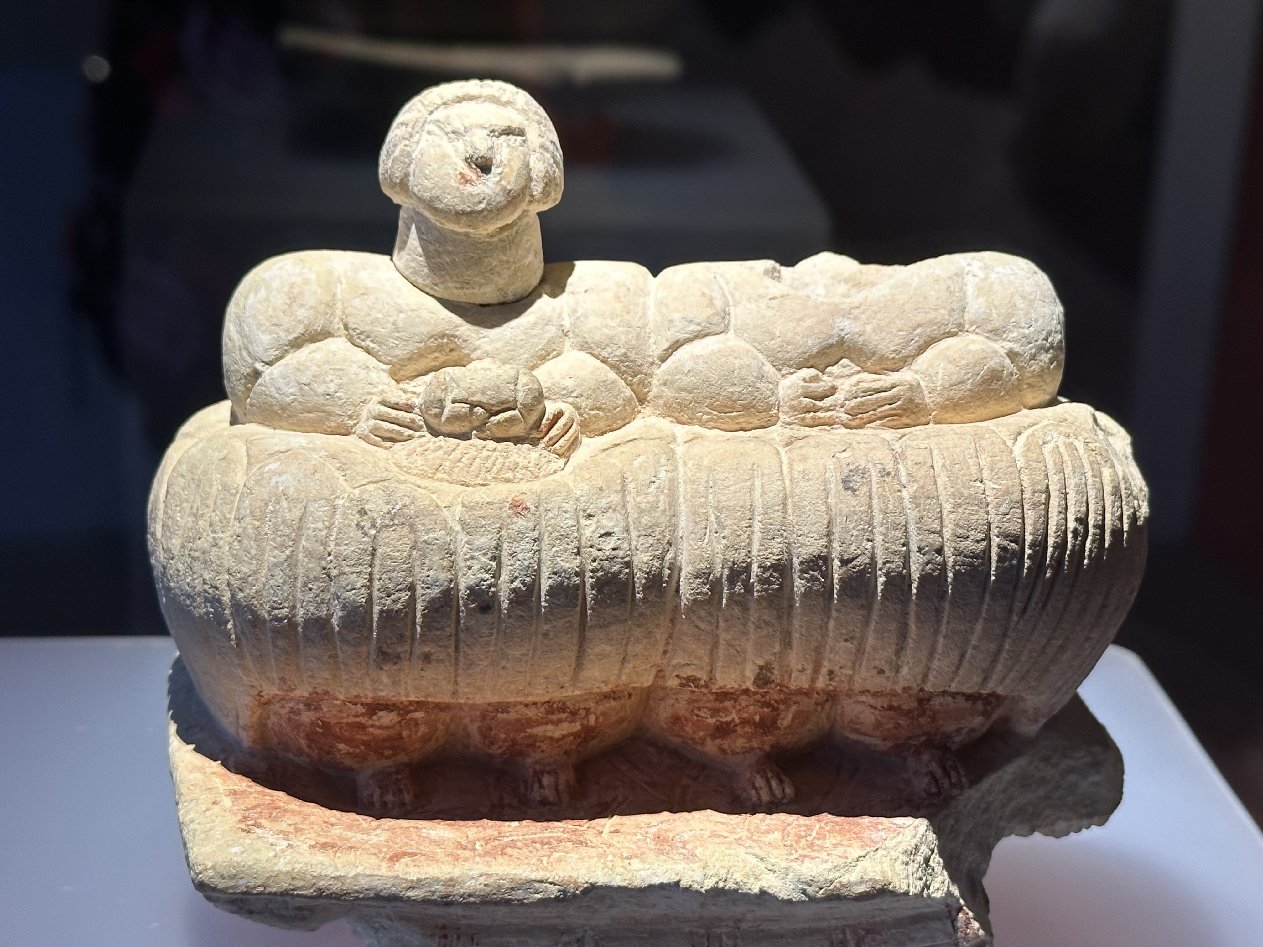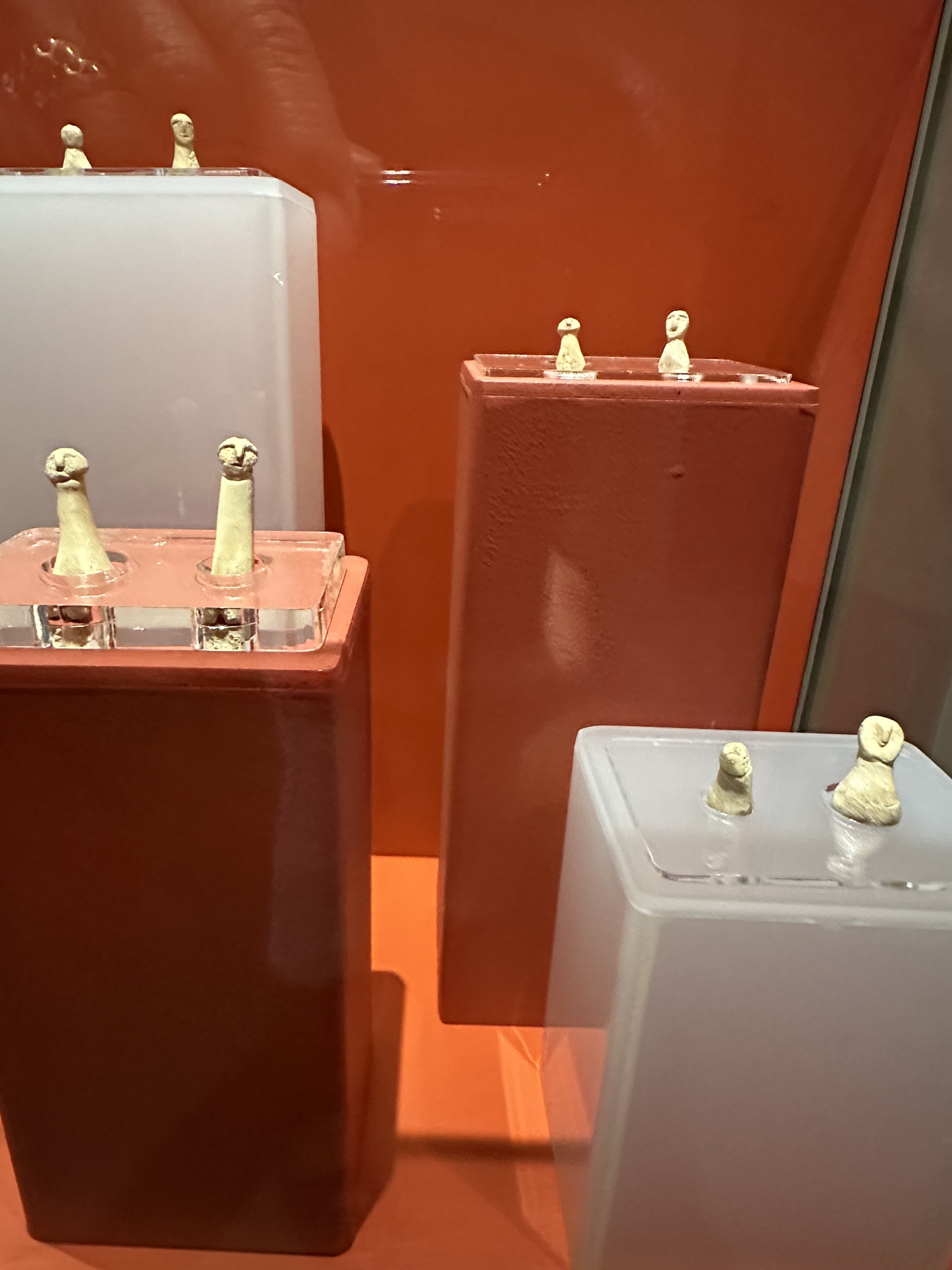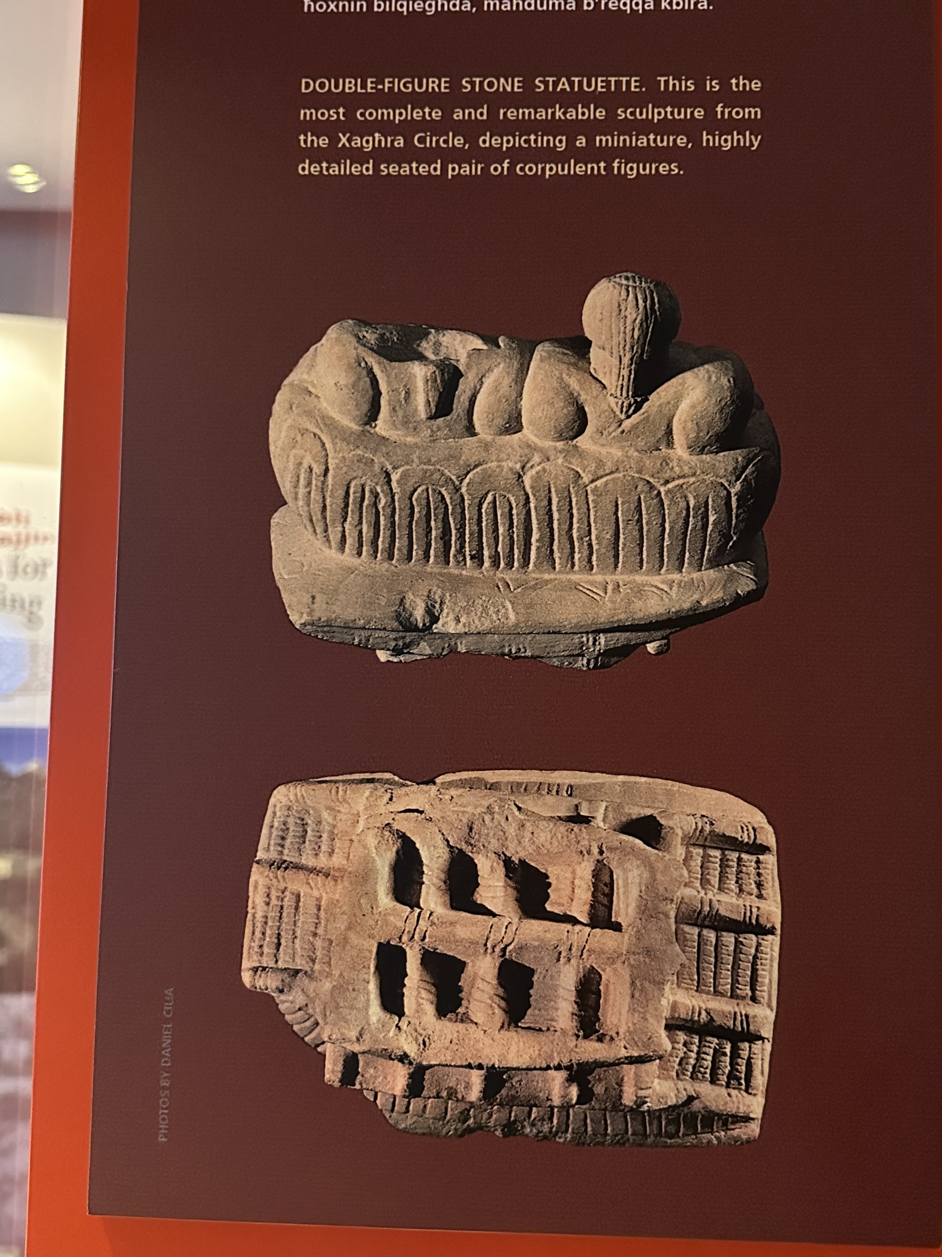 Catherine and her daughter posing in the advertisementThe largest room in the underground Hypogeum. A spectacular room in the HypogeumA small statuete of 2 people sitting on a sofa like piece of furnitureA wooden reconstruction shows how the furniture may have been made. Small statues that may have been bundled together More bone statues. These sculptures were made from cow toe bones