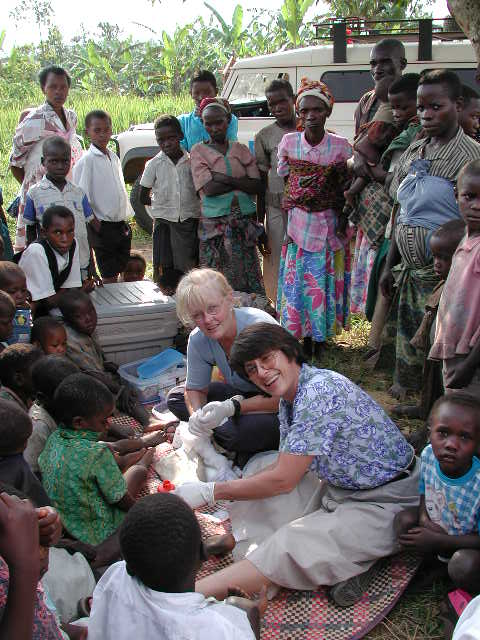 It was quite an eye opener to see a couple hundred people appear out of nowhere and wait patiently to be seen and helped. Carol’s job was to provide wound care for anyone with cuts or sores, while Scott tended to more complex problems like malaria, HIV and other diseases. He used a huge ficus tree as shade cover and hooks to hang the IV’s on. That tree has since become famous for being Scott’s first hospital ward.