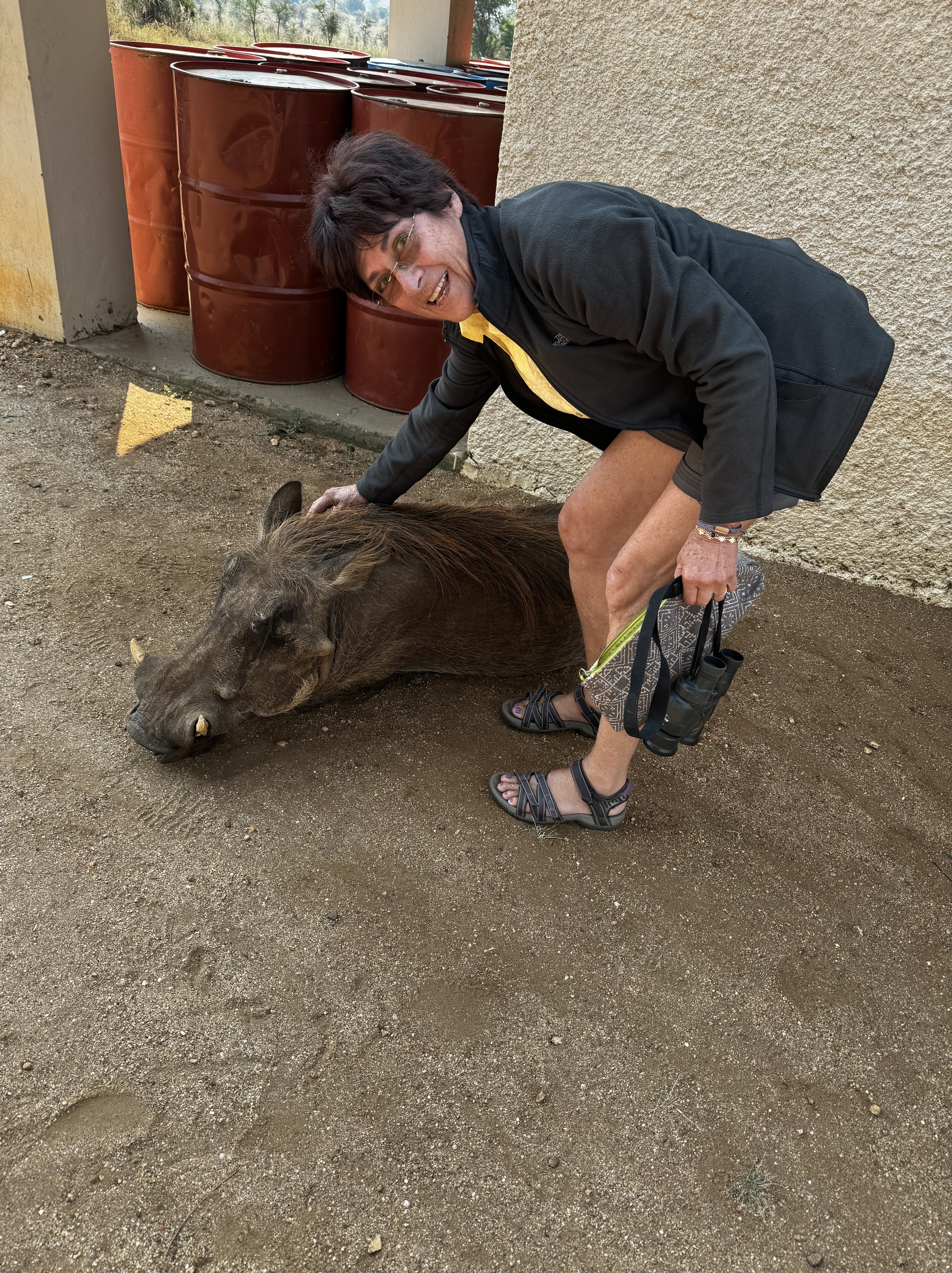 Back as camp, we had a light salad for lunch and took the afternoon to finish and publish a post, and swim in the rock pool. The water was delightful—not too cold or warm. Our bungalow is the farthest out. It was quite comfy. We also spent some time scratching the resident wart hog, Bob.