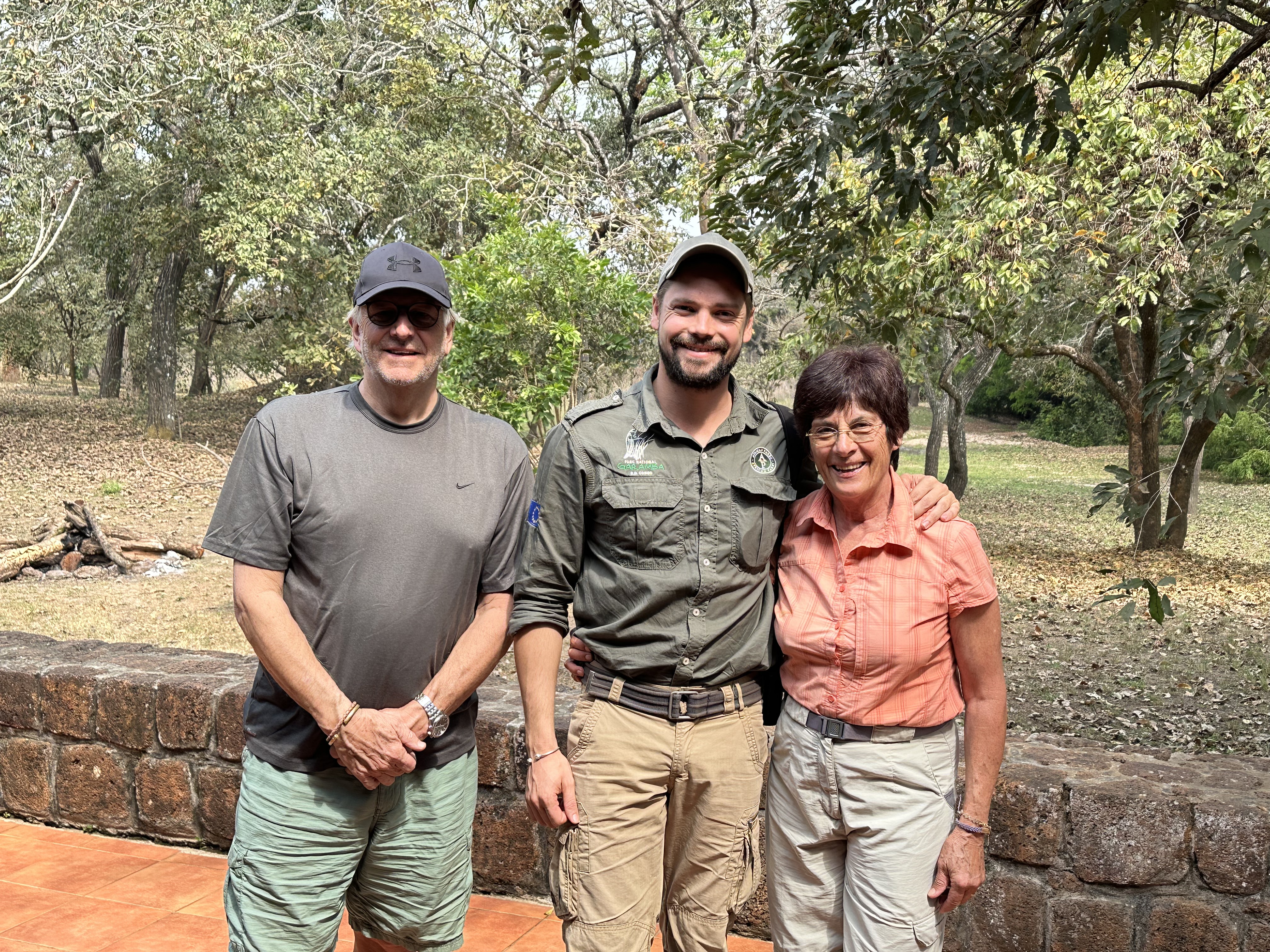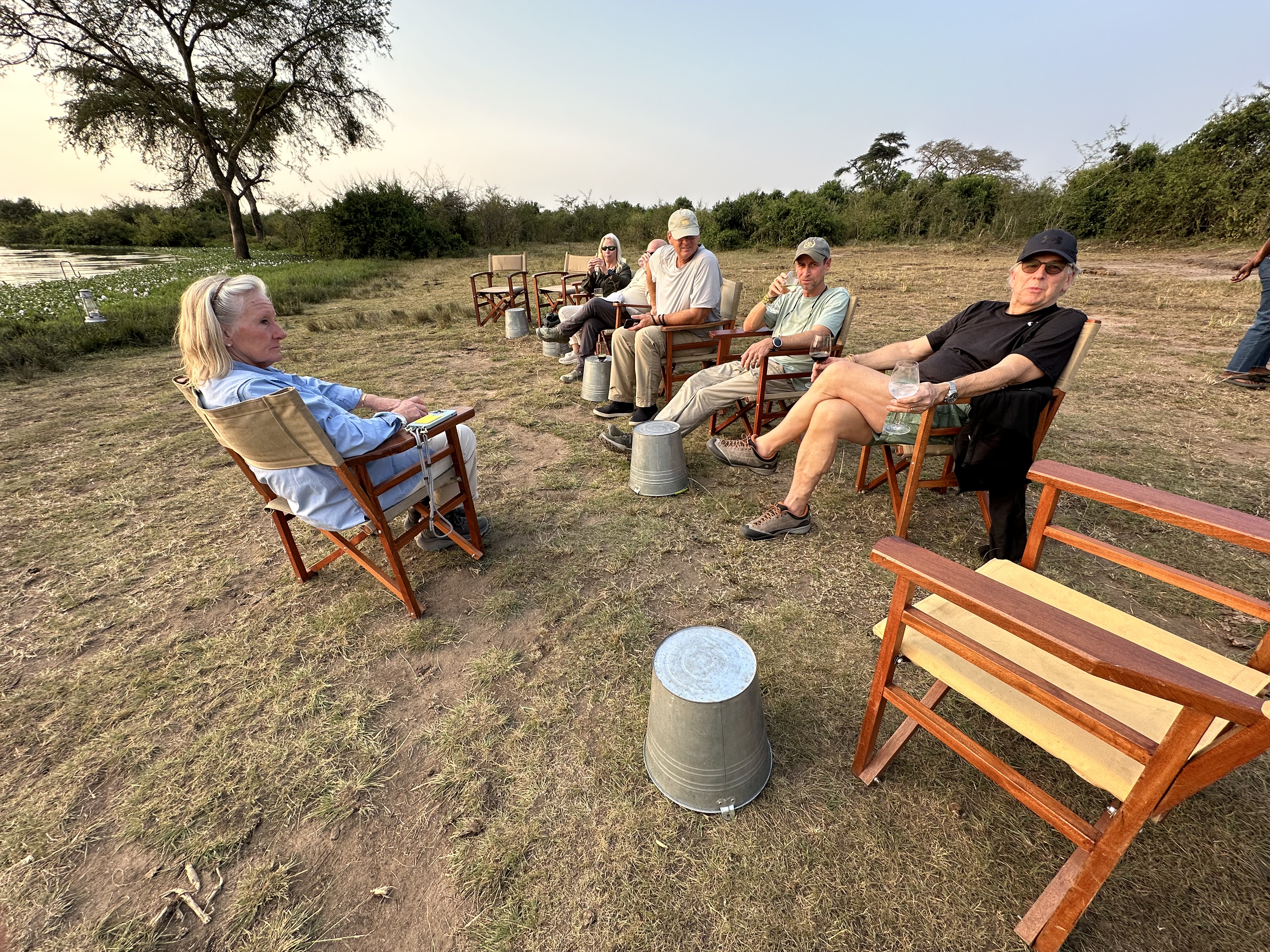 We took the afternoon off. Stayed cool in our room and read, wrote, and rested. At 6pm we gathered around the campfire for cocktails and talked more about the animals we were not seeing. With us were Martin, the handsome young researcher and expert on white Rhino; Oggie, our delightful helicopter pilot; Connor, a military trainer for the Garamba Park rangers; and Phillipe, the park manager. Jonathan was not feeling well and departed early. From the research there should be 1500 elephants, 82 giraffe and 8,000 buffalo, among all the other animals. We talked about how hard it is to spot them in the tall grass and ways to try and increase the population, about the lack of tourists and how to attract them, and the fear factor due to years of wars and animal poaching. It did not make for a pretty picture as far as I can tell.