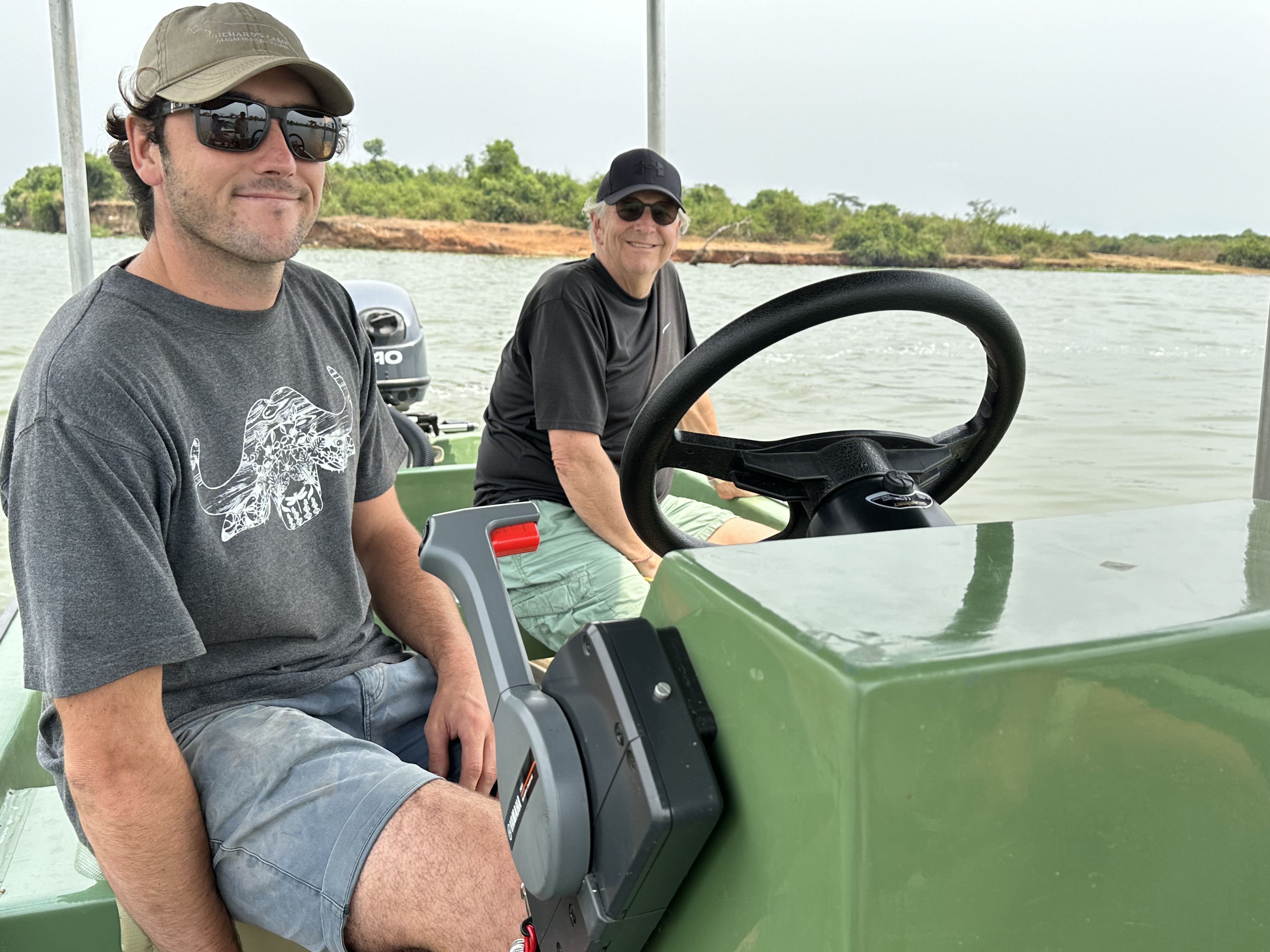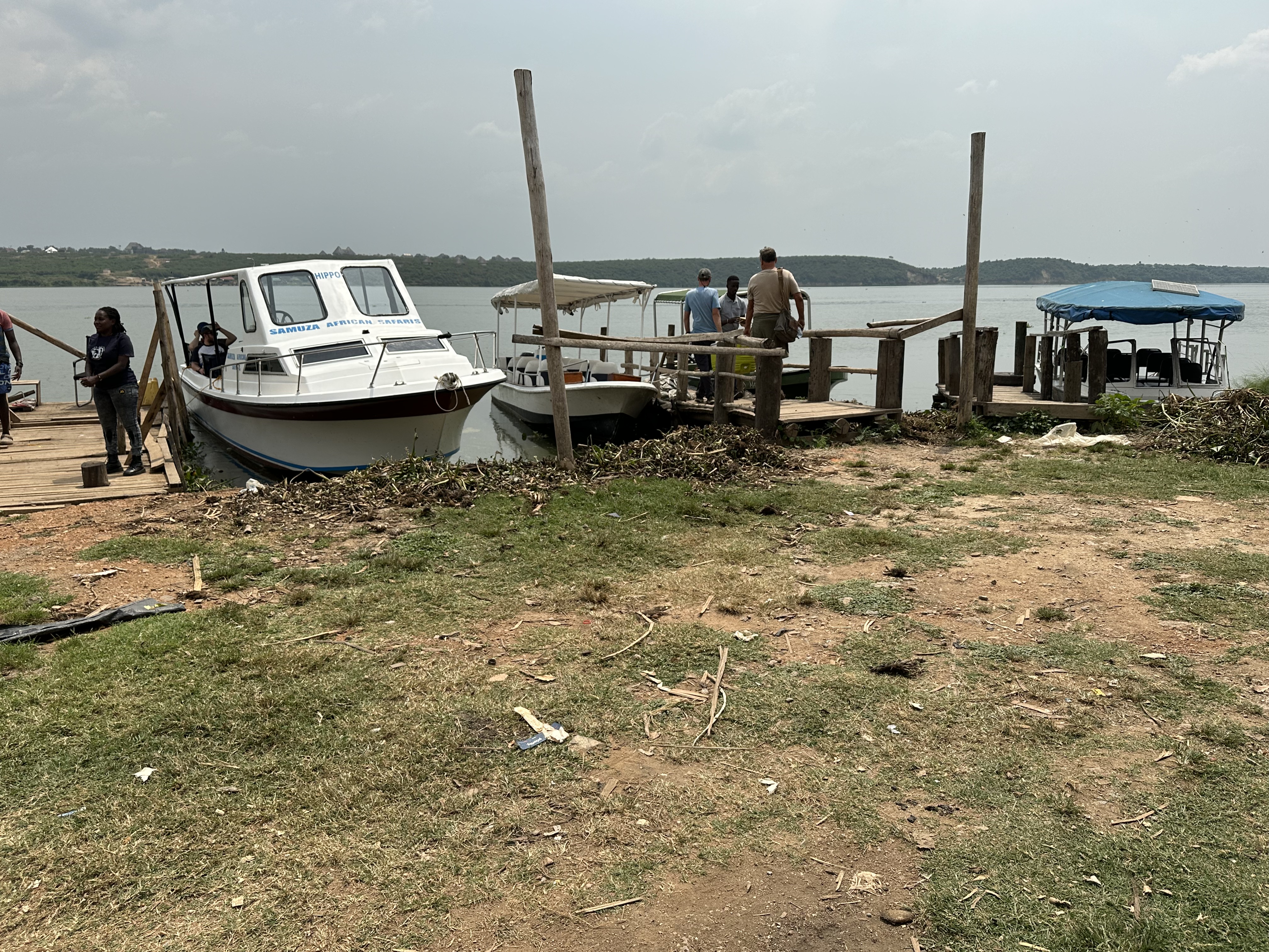 At 9am Kenneth arrived at the Guest House to take us on the first leg of our safari journey. He is a driver for The Uganda safari Company, which is handling our travels through Uganda and the Democratic Republic of the Congo (DRC). He had been our driver during our stay in Uganda in 2018 and it was nice to see him again. He drove us north through Kihihi and Queen Elizabeth National Park to a put in at Katunguru, where we transferred to a 17 foot motor boat.